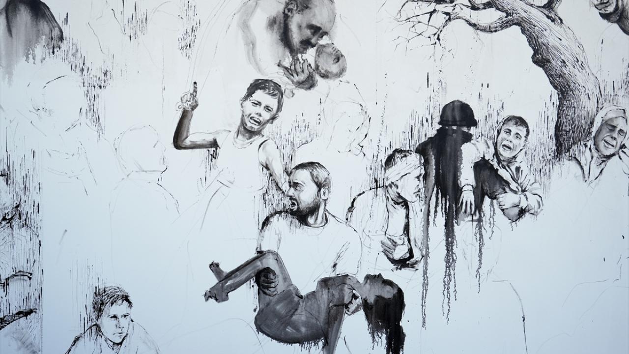 "Burada da Gazze`de aklımızda yer eden, görüp unutamadığımız ifadeleri, sert çizgilerle tuvale aktarıp, izleyiciyle göz göze getirmek istiyorum. Kendime 21 gün süre biçtim. İlk iki hafta kaba bir şekilde çizim yaptıktan sonra kalan bir hafta da detay, ayrıntı gireceğim. Yer yer kırmızı boya kullanacağım. Bu çalışma aslında 27 yaşında genç bir sanatçının 21 günlük çizim eylemi. Çalışmanın beni nereye götüreceği hakkında hiçbir fikrim yok."