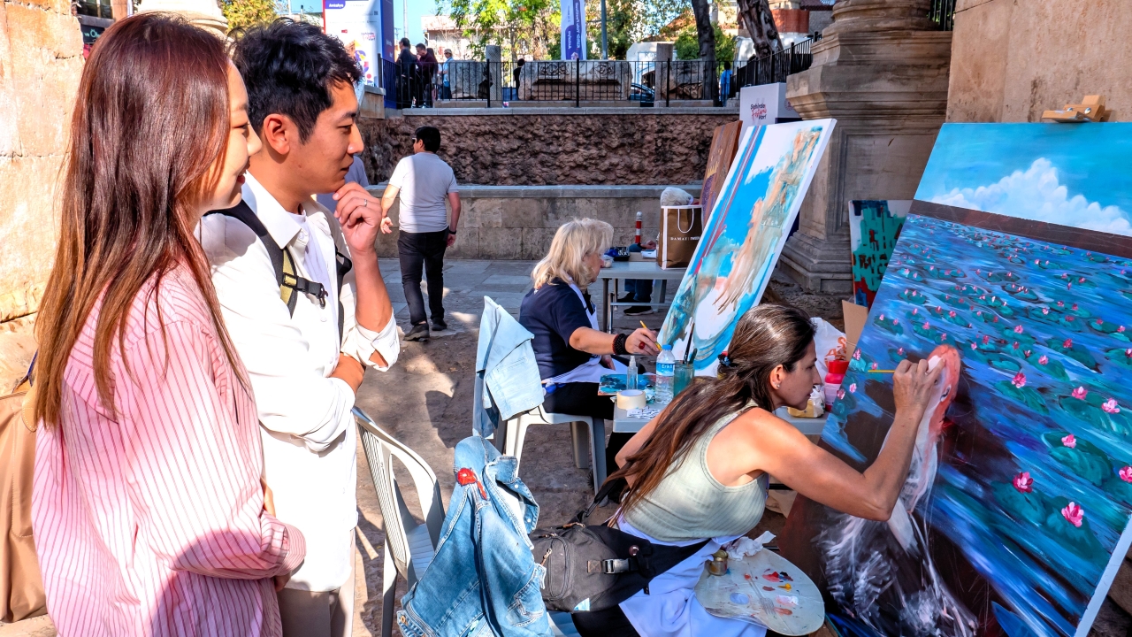 Çok sayıda turistin de ziyaret ettiği bölgede ressamların çalışmaları ilgiyle izleniyor.