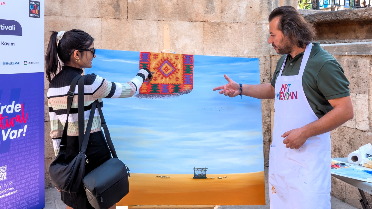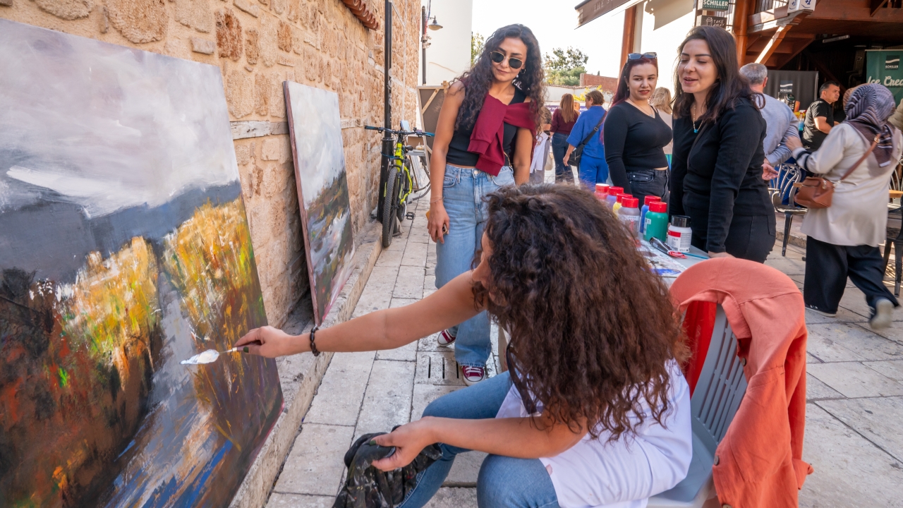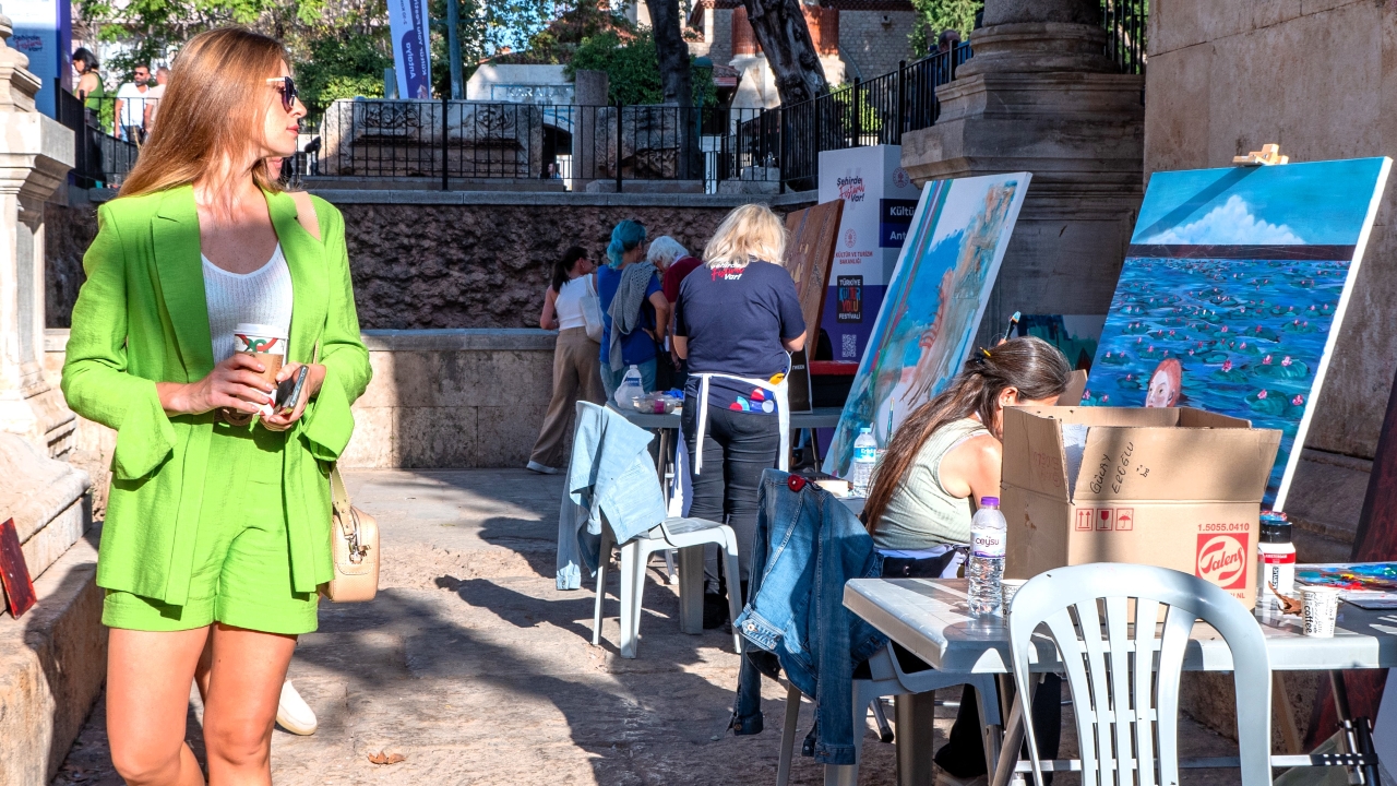 Festivalin "Art Meydan" adı verilen etkinliği kapsamında Antalya`lı ressamlar Antalya`nın sembol yapılarından Hadrian Kapısı`nda sanatlarını icra ediyor.