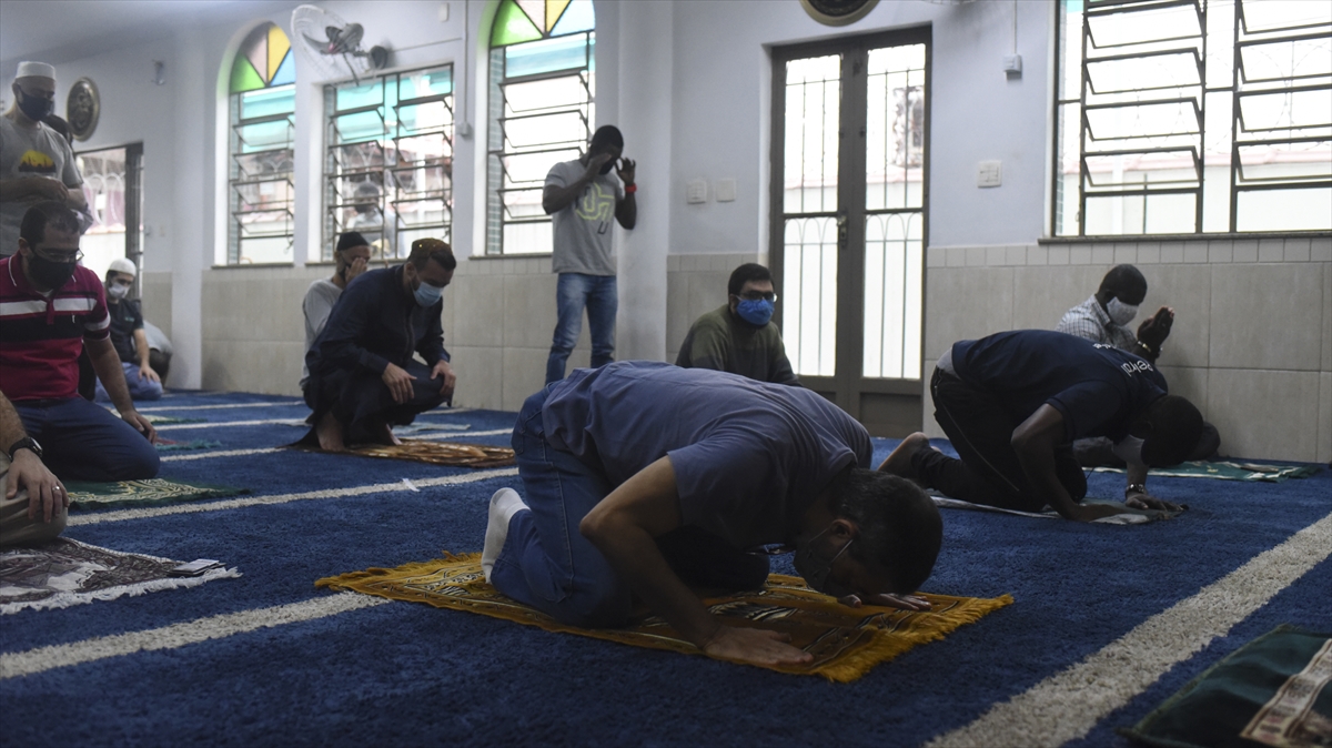 Brezilya'nın Rio de Janeiro kentinde yeni tip koronavirüs (Kovid-19) salgını önlemleri kapsamında 4 aydır kapalı olan camiler, önlemlerin gevşetilmesi ile birlikte yeniden açıldı. Müslümanlar Morro do Borel mahallesindeki camide maske takarak ibadetlerini gerçekleştirdi.