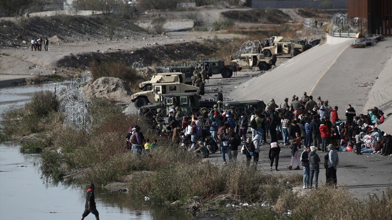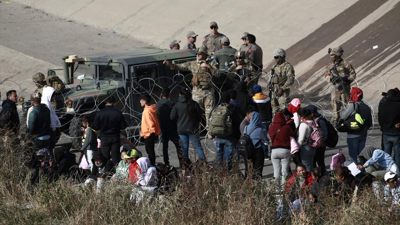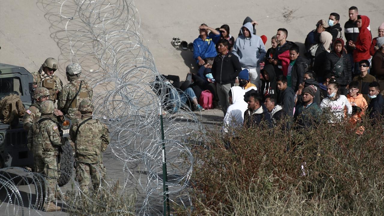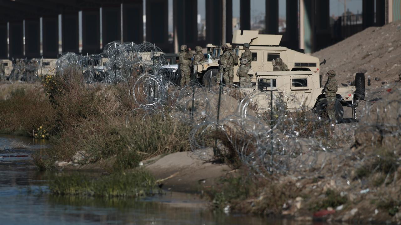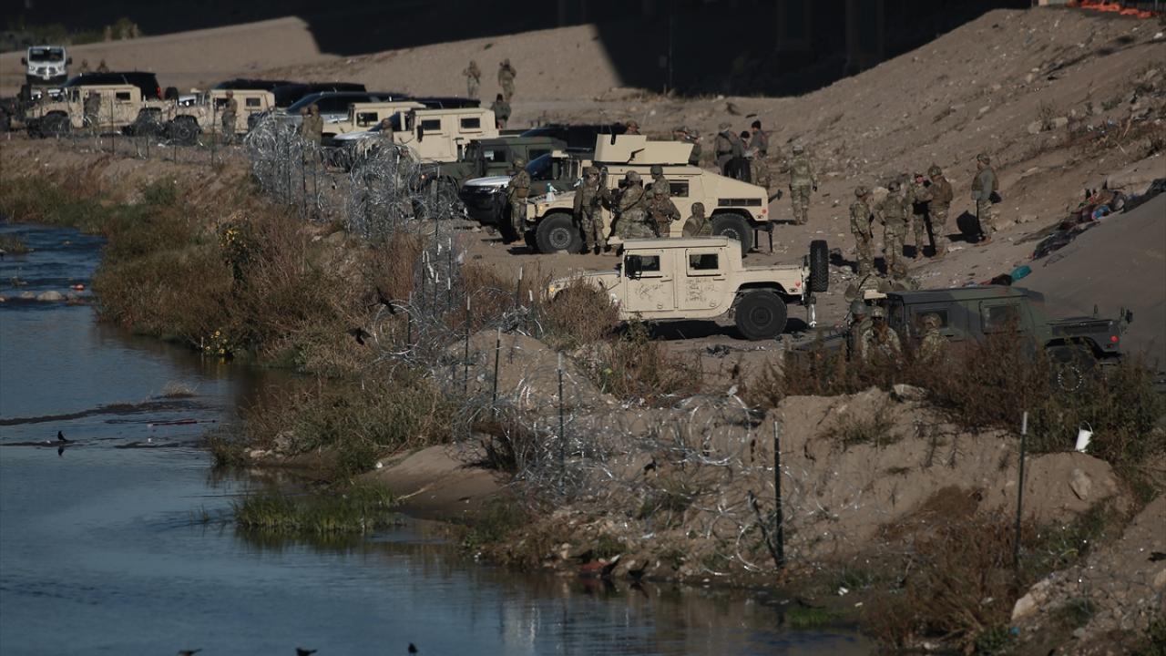 El Paso şehrine yakın alanda sınırı oluşturan Rio Grande Nehri’nin Meksika tarafında toplanan düzensiz göçmenlerin geçişini engellemek üzere alana sınır muhafaza birlikleri konuşlandırıldı.