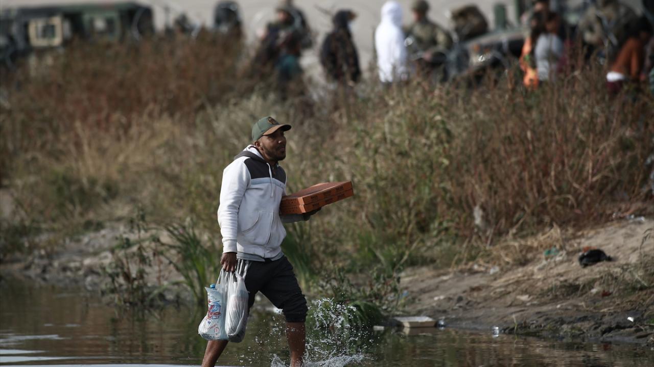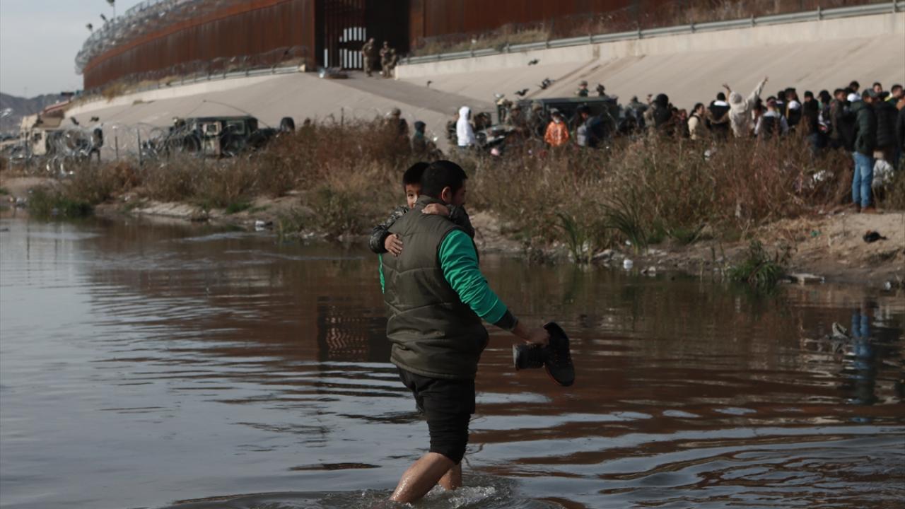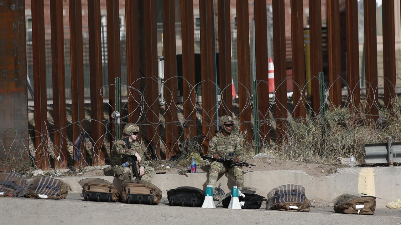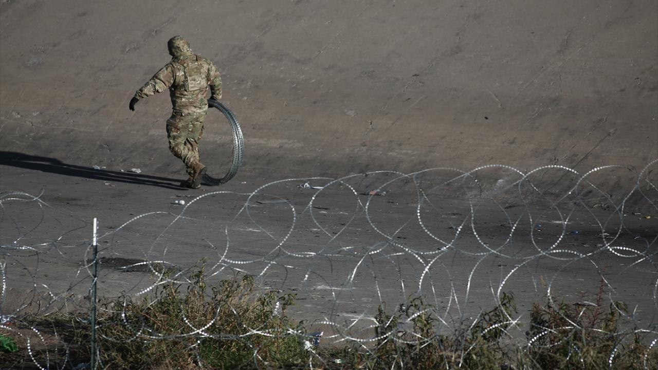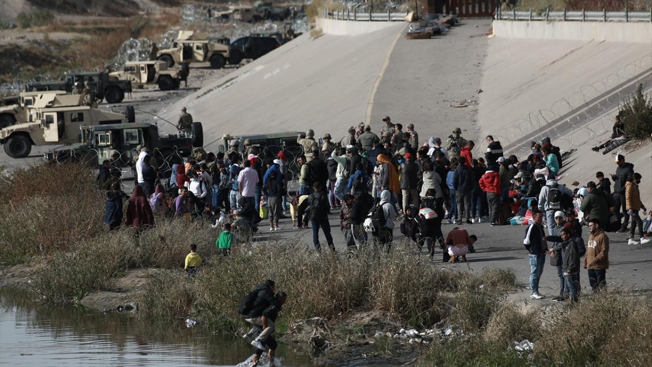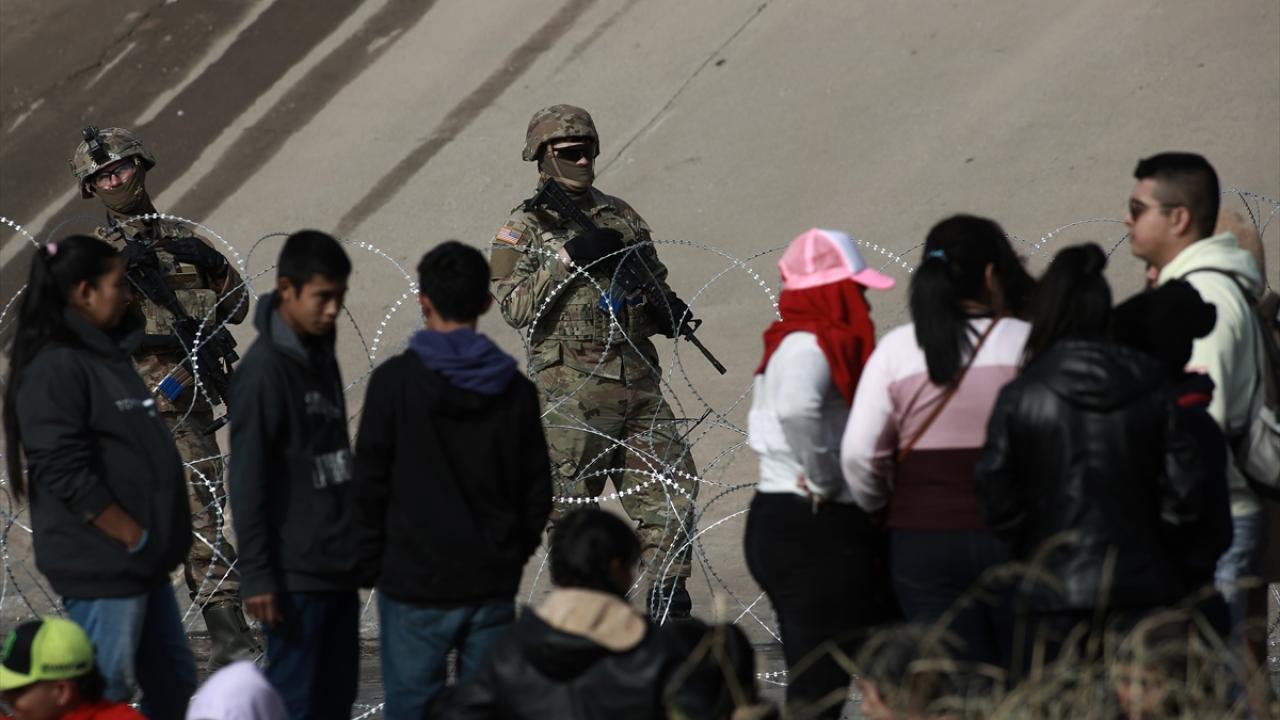 El Paso şehrine yakın alanda sınırı oluşturan Rio Grande Nehri’nin Meksika tarafında toplanan düzensiz göçmenlerin geçişini engellemek üzere alana sınır muhafaza birlikleri konuşlandırıldı.