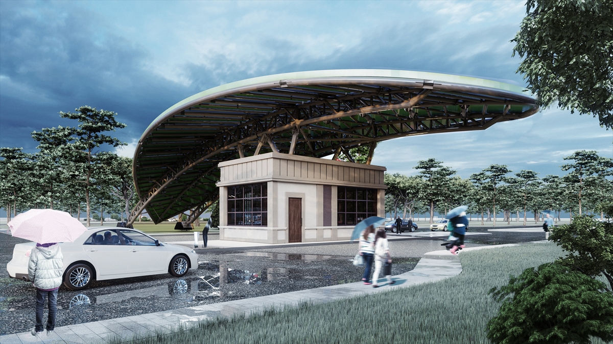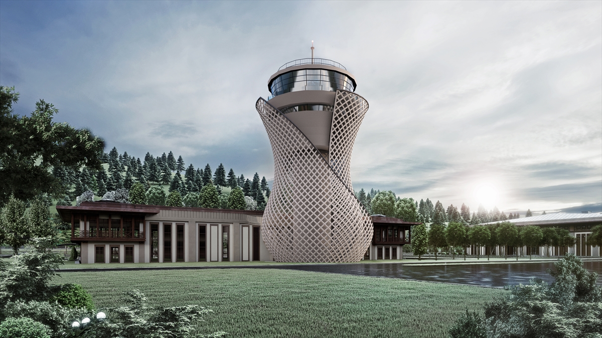 Rize-Artvin Havalimanı`nın, yöresel mimariyi yansıtan en önemli görselleri olan çay yaprağı şeklindeki giriş takı ile çay bardağı şeklindeki kulenin yapımı tamamlandı.