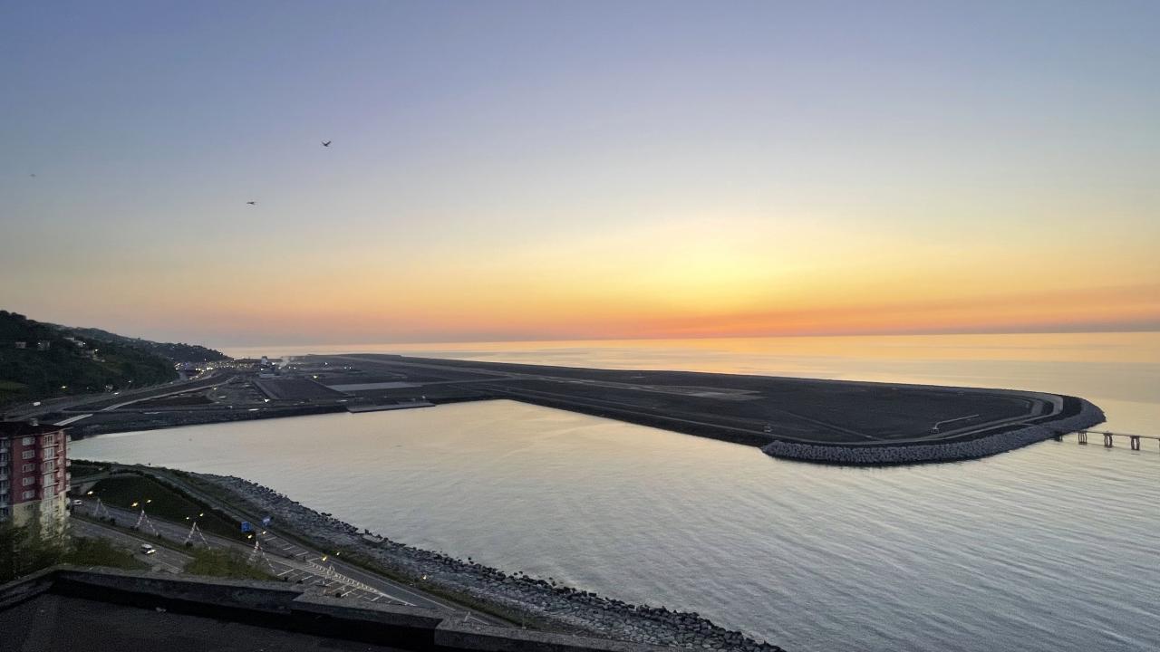Öte yandan gün batımı ile Ordu-Giresun Havalimanı`nın ardından Türkiye`nin deniz dolgusuyla inşa edilen ikinci havalimanında güzel görüntüler oluştu.