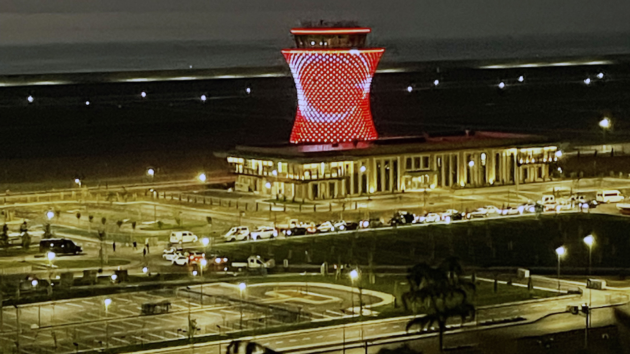 Gece saatlerinde çay bardağı şeklinde inşa edilen kule ışıklandırılarak Türk bayrağı figürü yansıtıldı. 3 bin metre uzunluğundaki pist ise aydınlatıldı.