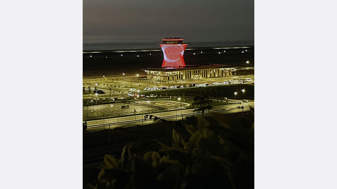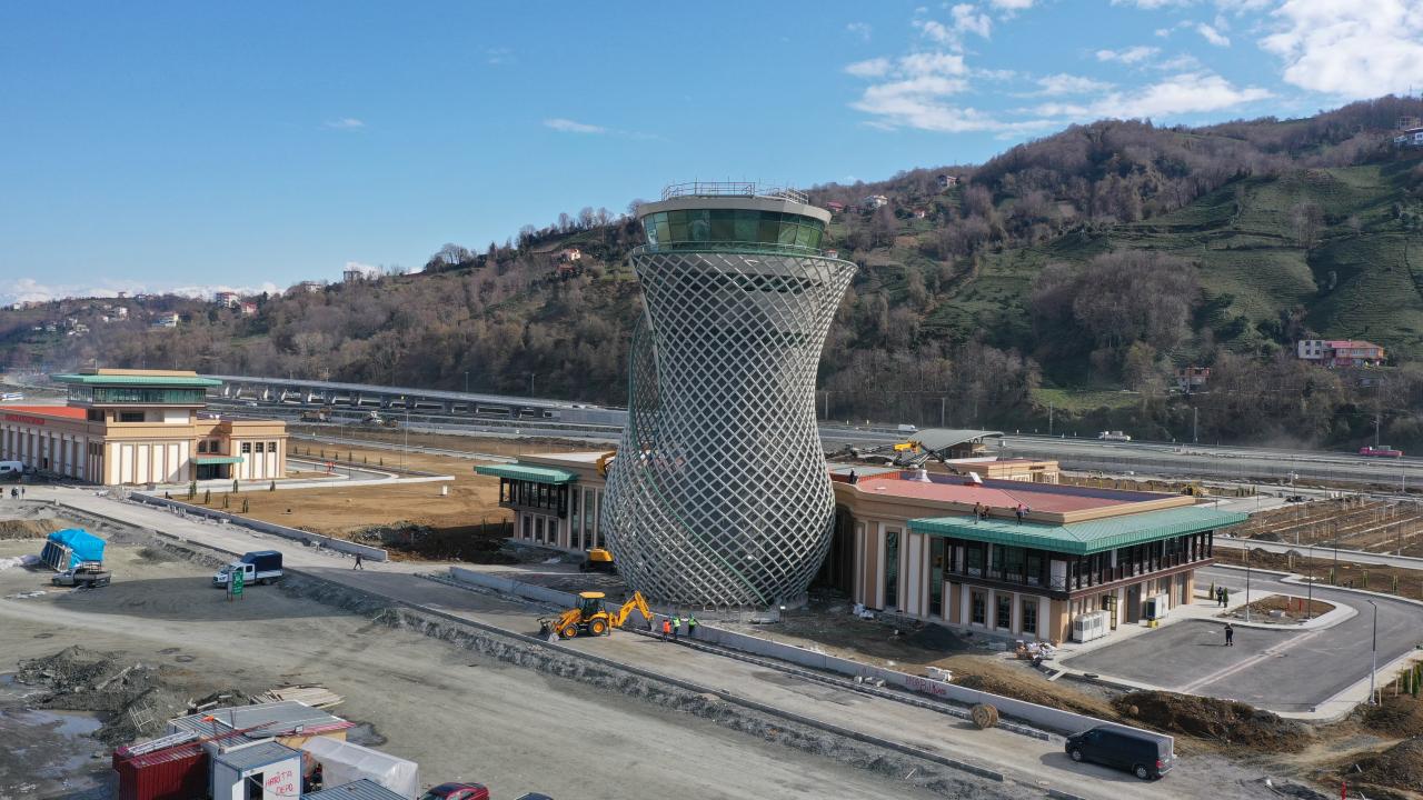 Havalimanının çay yaprağı şeklindeki giriş takı ile çay bardağı şeklindeki hava trafik kontrol kulesi, yöresel mimariyi yansıtıyor.