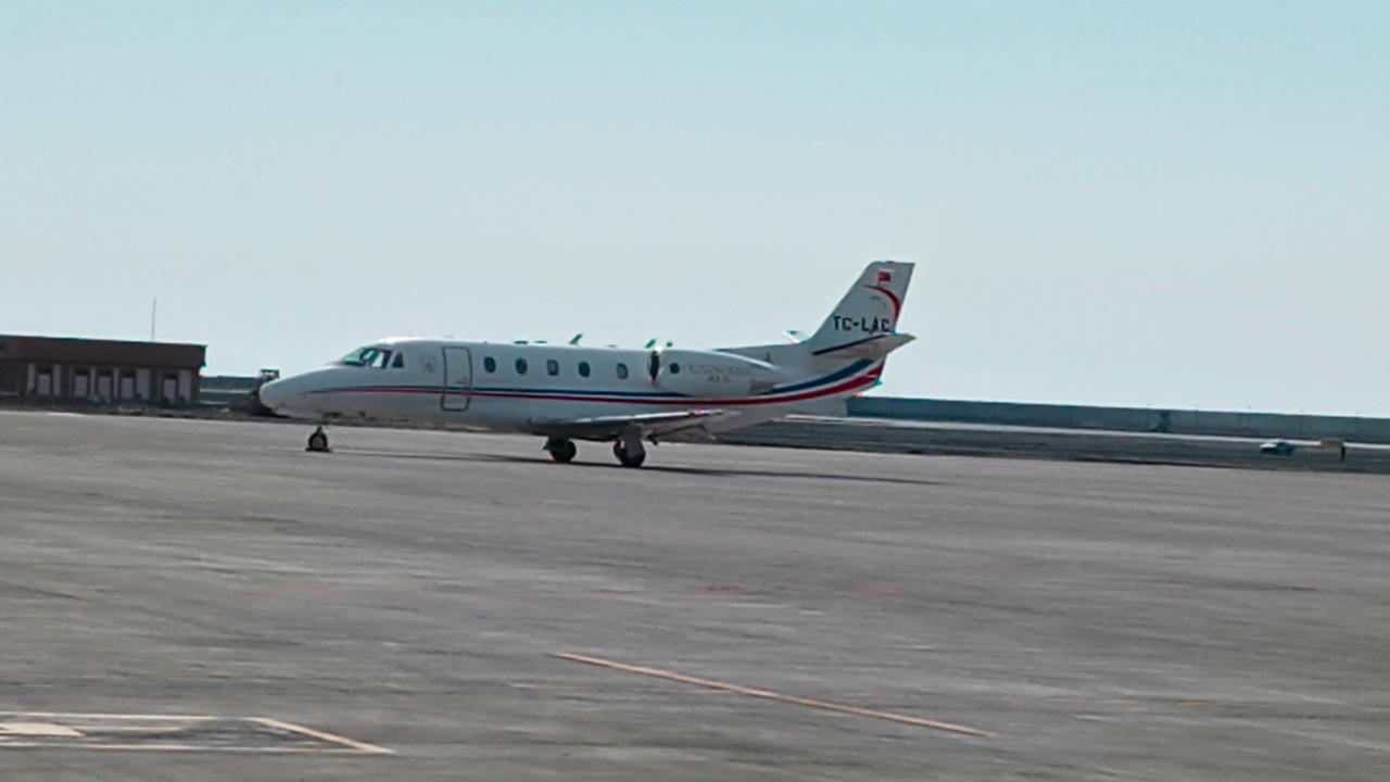 Havalimanında uçuş kontrol uçağı ile 3 bin metre uzunluğunda, 45 metre genişliğindeki pistte seyrüsefer cihazlarının devreye alınması için başlatılan test uçuşları sürüyor.