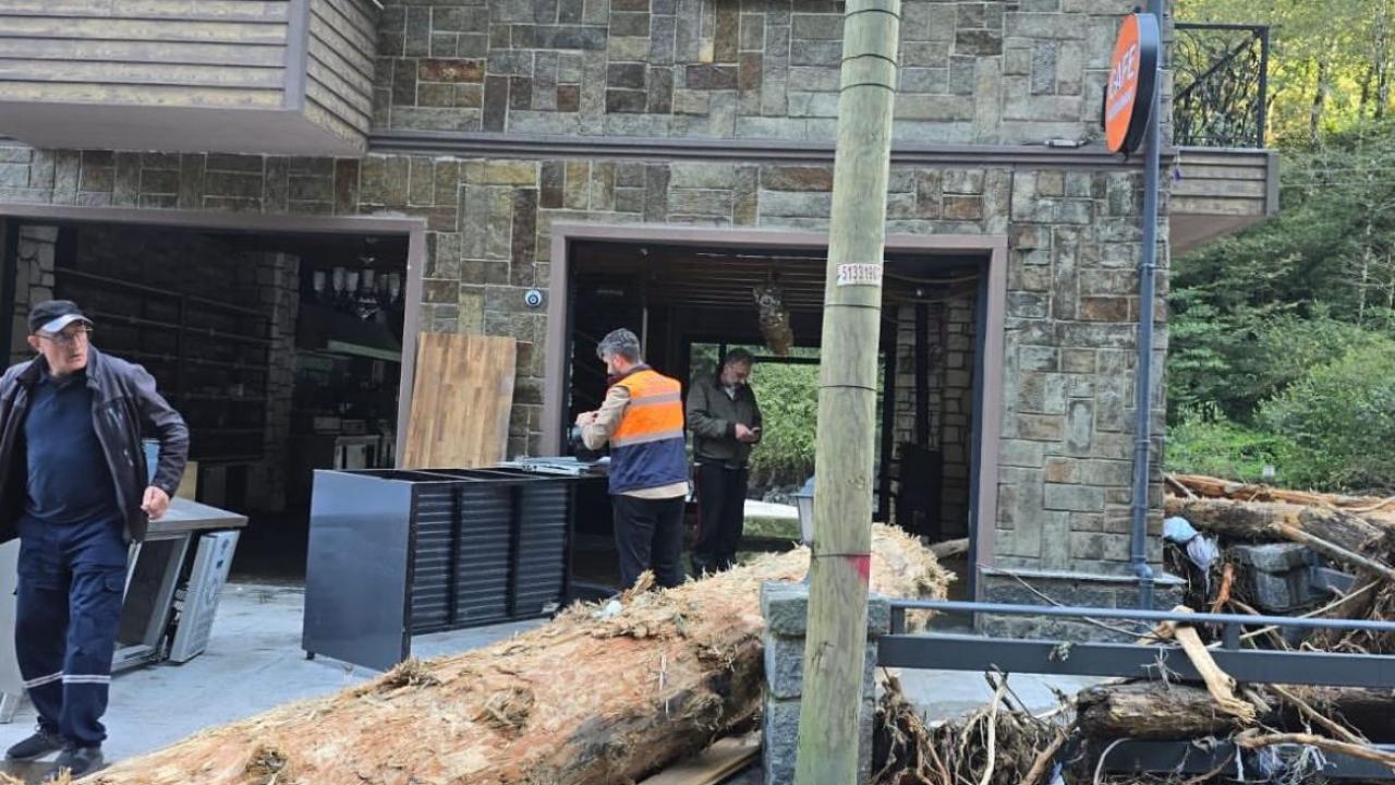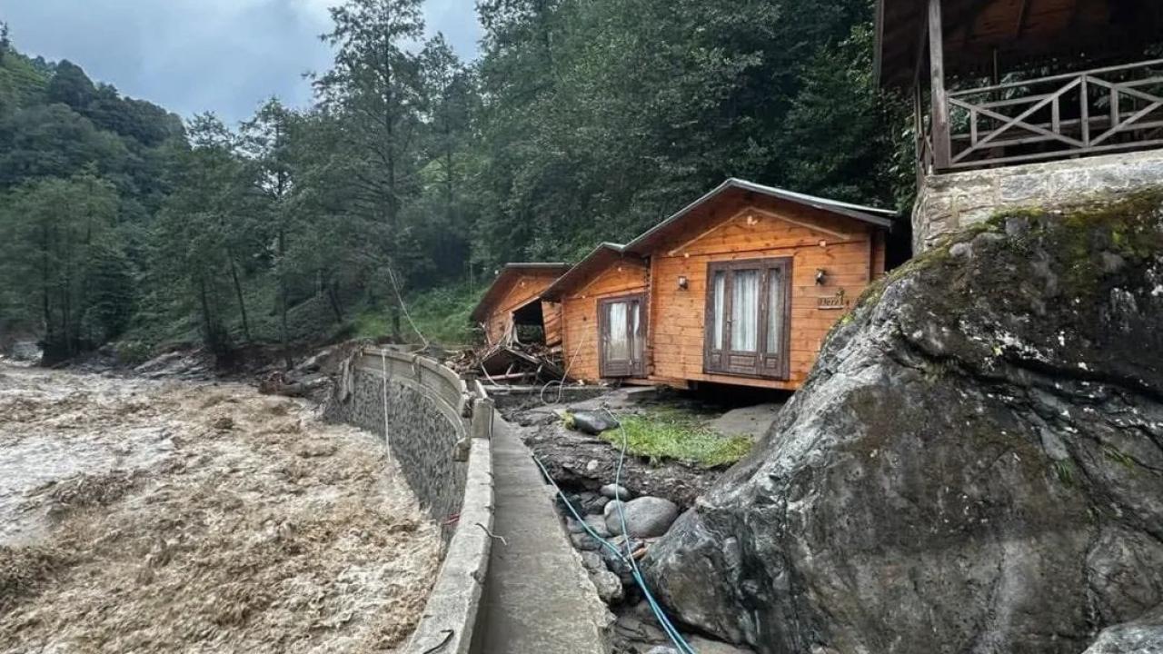 Ardeşen’de Durak Deresi`ne yakın alanda kurulu sosyal tesislerdeki 2 bungalov yıkıldı.