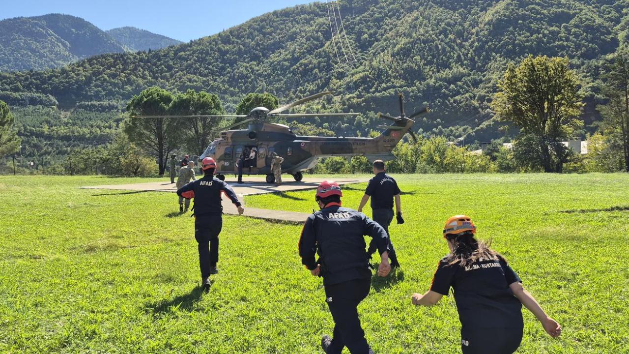 Artvin`in Borçka ilçesinde etkili olan yoğun yağışlara bağlı sel ve heyelanlar nedeniyle ulaşım sağlanamayan Camili Havzası`ndaki (Macahel) turizm işletmelerinde mahsur kalan turistler helikopterlerle tahliye edildi.