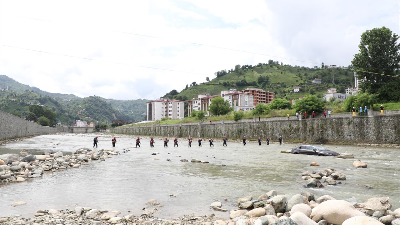 Kısa sürede olaya müdahale eden ekiplerin otomobil üzerindeki kişiyi kurtardığı, sel sularına kapılan kişilerin ise cesedini kıyıya çıkardığı tatbikat, gerçeği aratmadı.