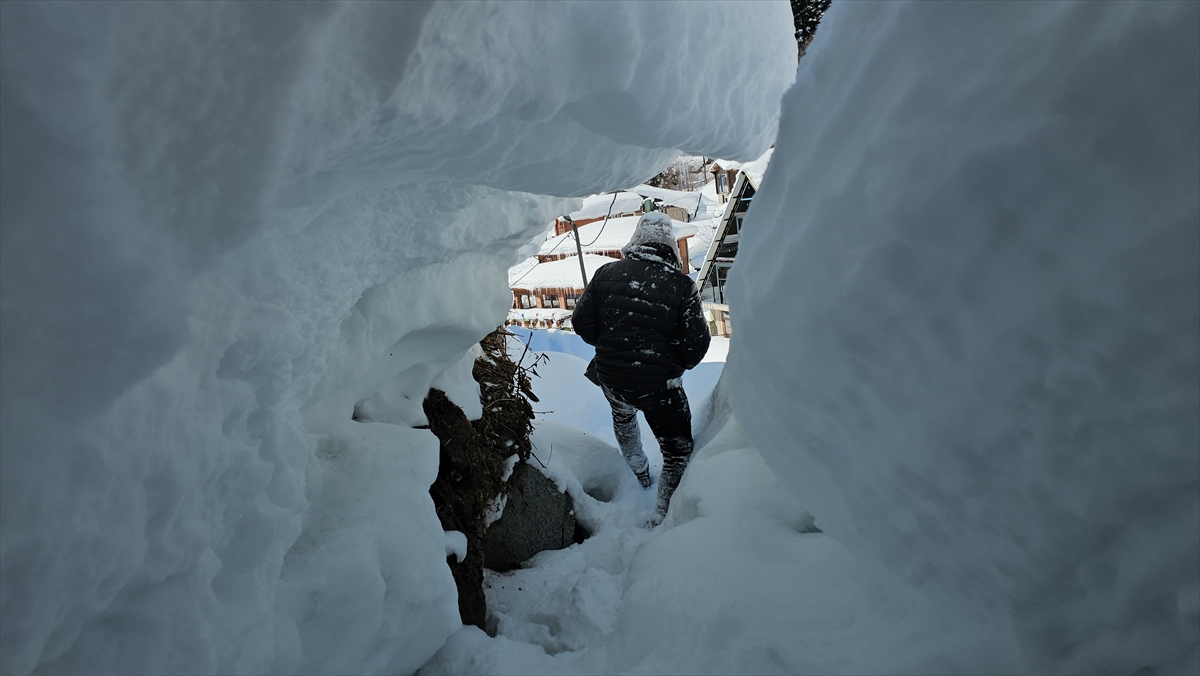 Kar kalınlığının yer yer 2 metreye yaklaştığı yaylada bazı evlerin girişleri kapandı.
