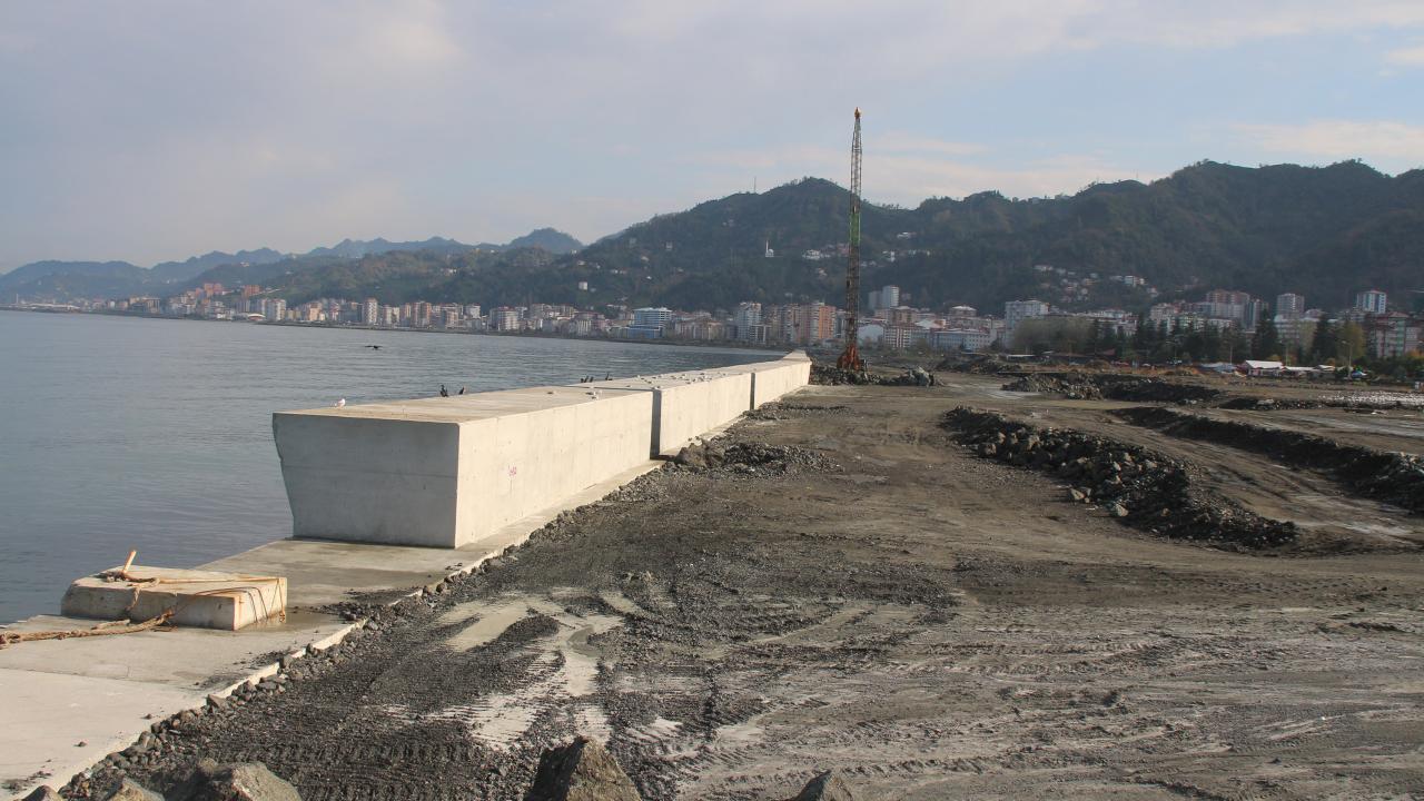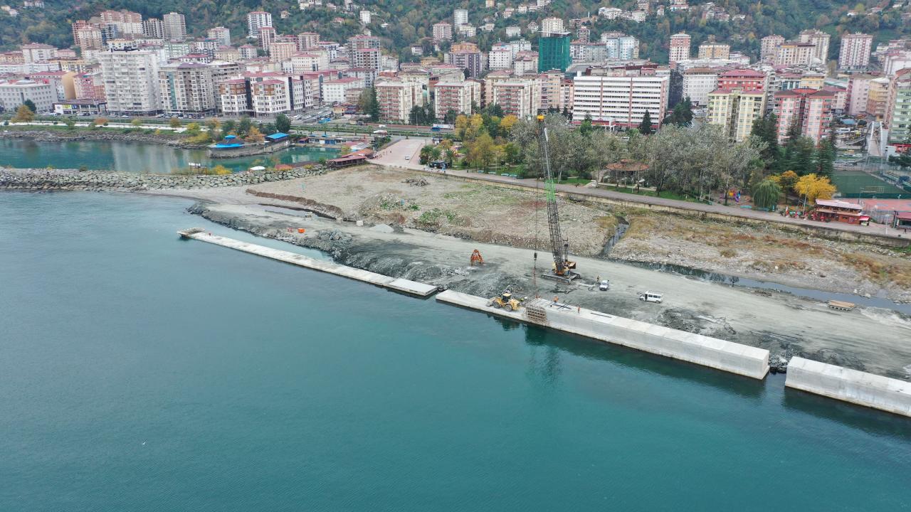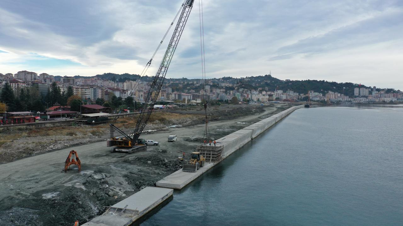 Projenin Karadeniz’in hırçın dalgalarından korunması için 4 metre yükseltilen dolgu alanı önüne dalga kıranlar yerleştirilecek.
