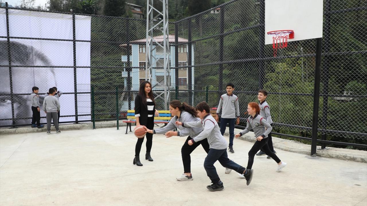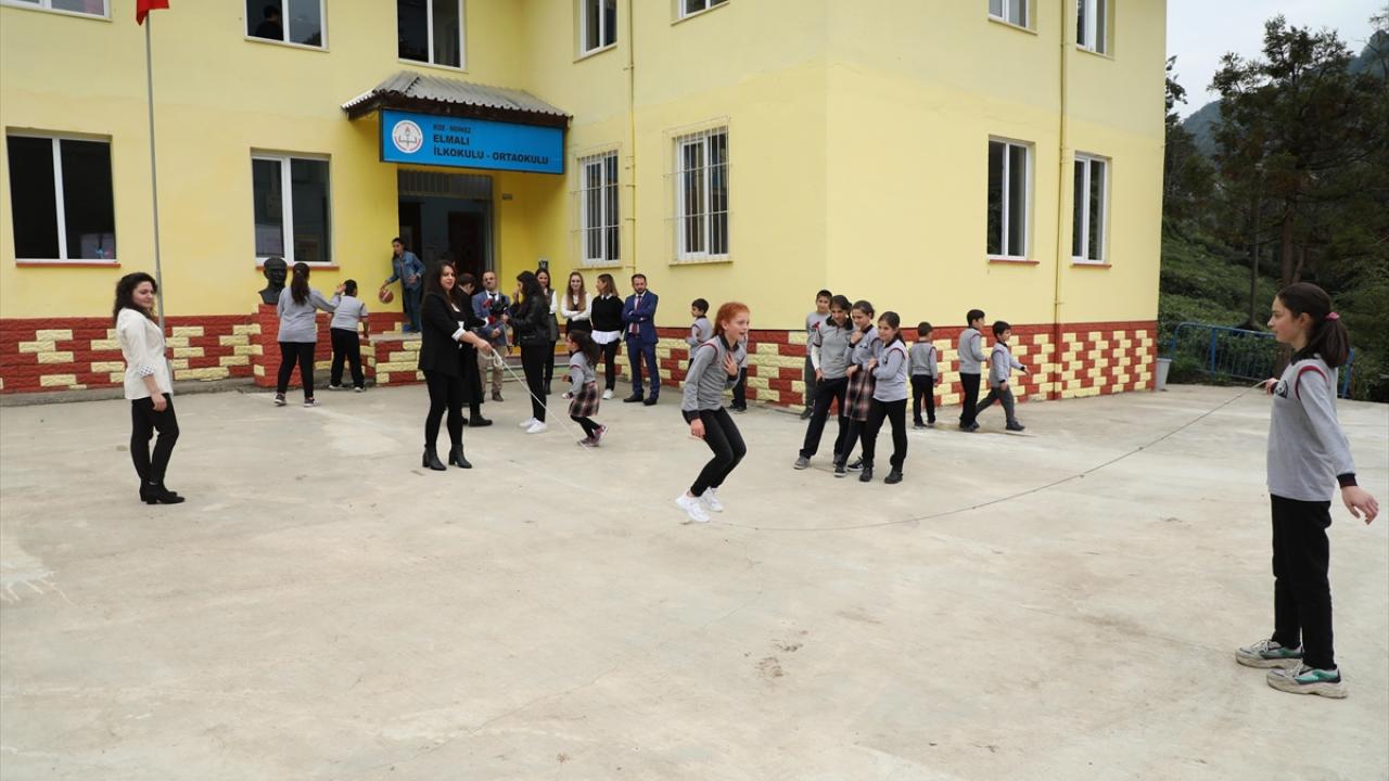 Rize'de heyelan nedeniyle bahçesi çöken okulda 14 ay sonra eğitim başladı
