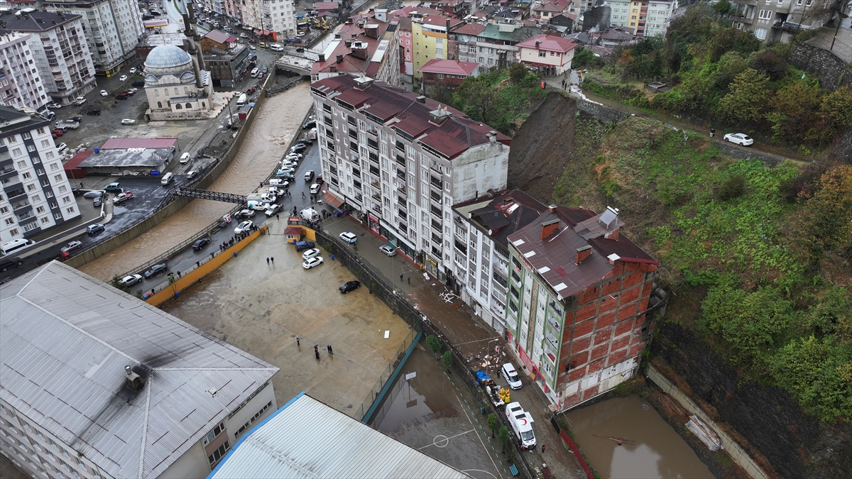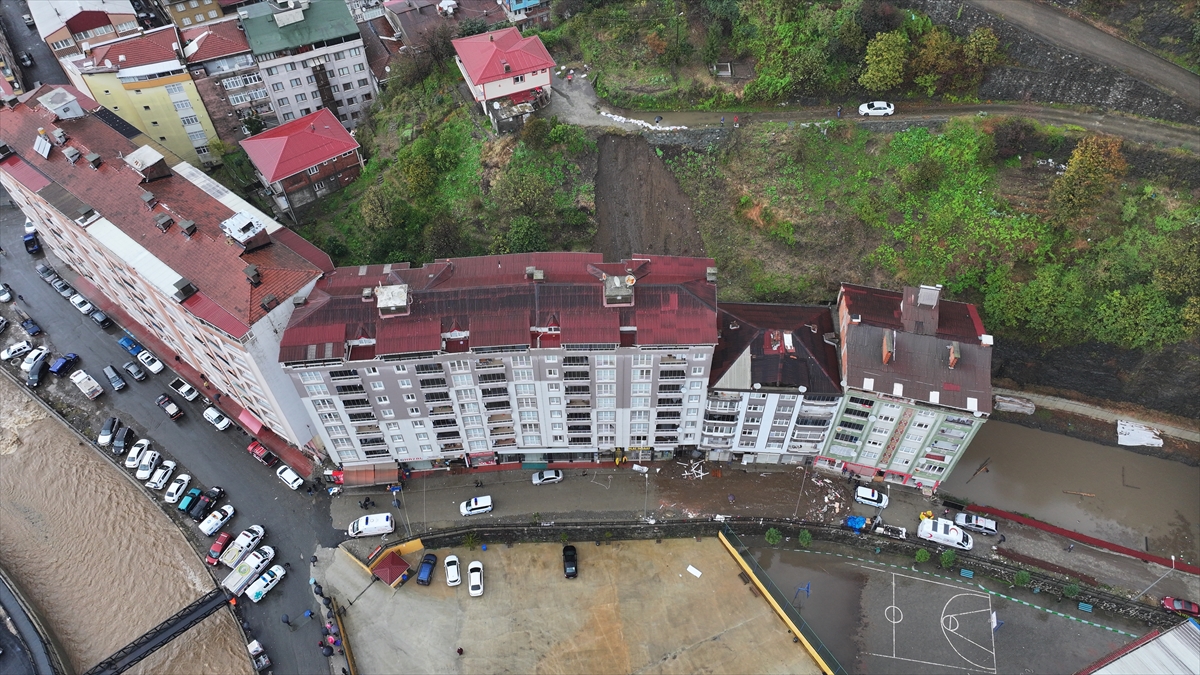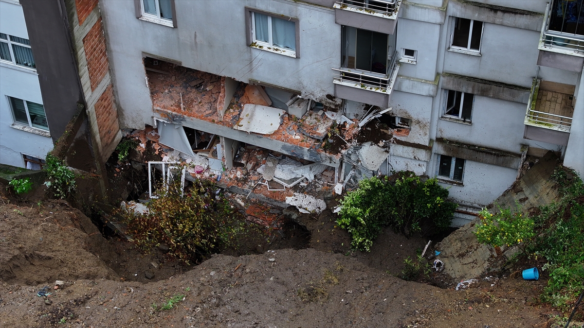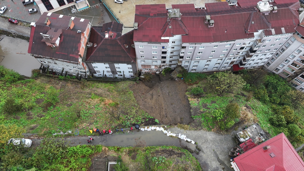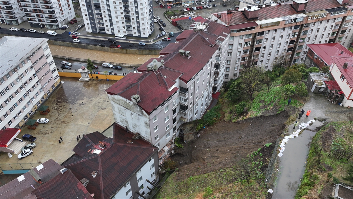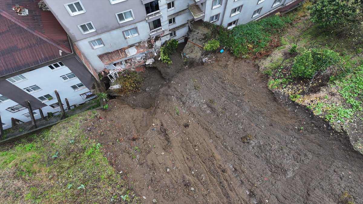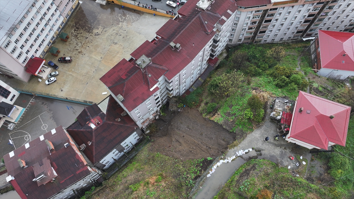 Rize'nin Çayeli ilçesinde meydana gelen heyelanda 1 kişi hayatını kaybetti, 4 kişi yaralandı. Yağışın etkili olduğu ilçeye bağlı Eskipazar Mahallesi'nde 6 katlı bir apartmanın arka tarafında bulunan toprak kütlesi kaydı. Heyelanın yaşandığı bölge dron ile görüntülendi.