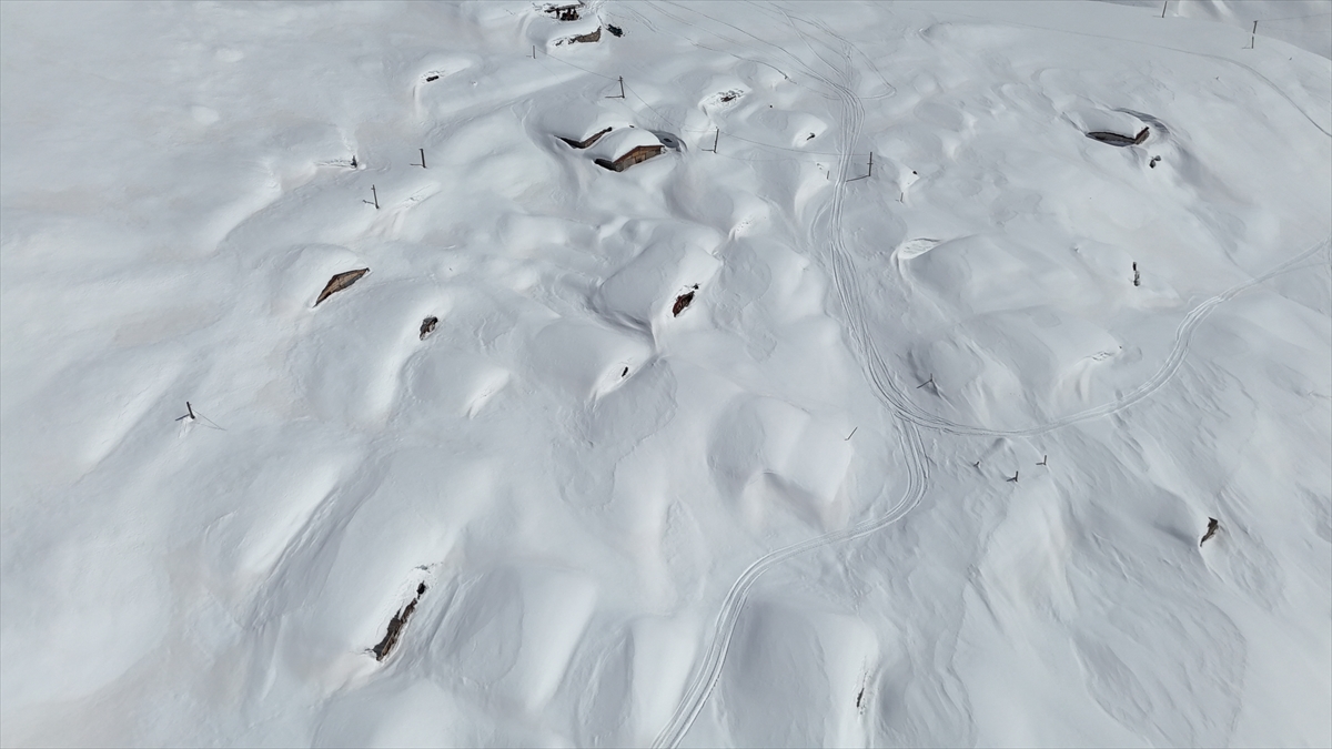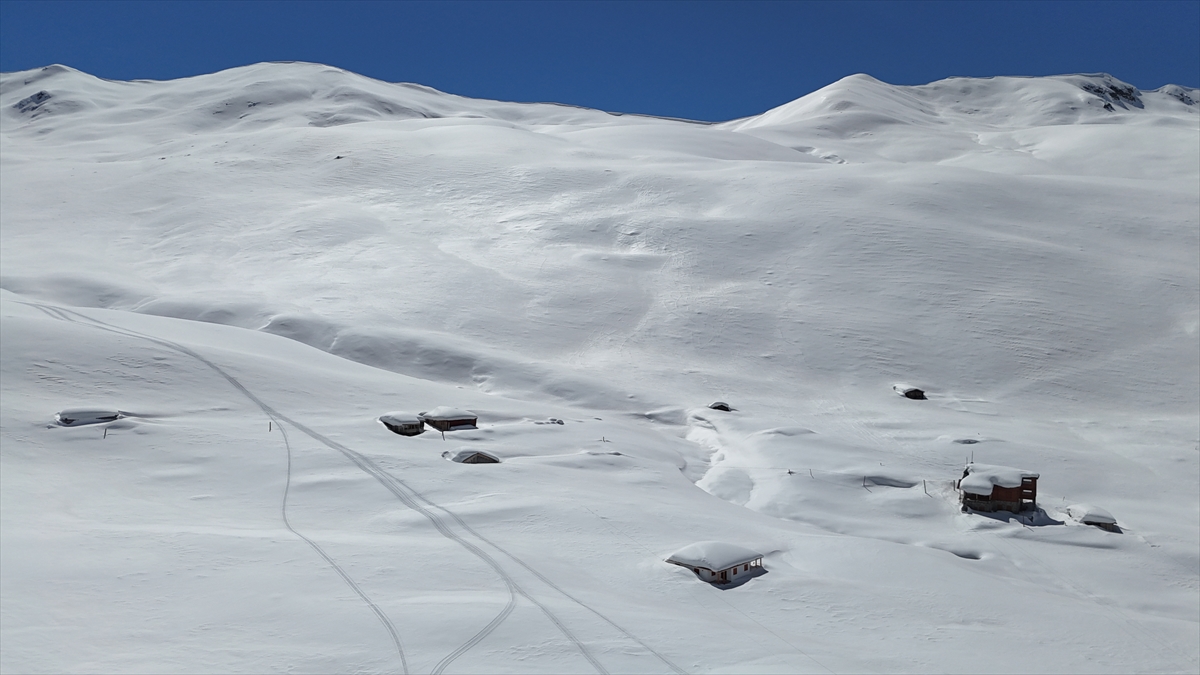 Rize'de karlar altında kalan yayla evleri havadan görüntülendi