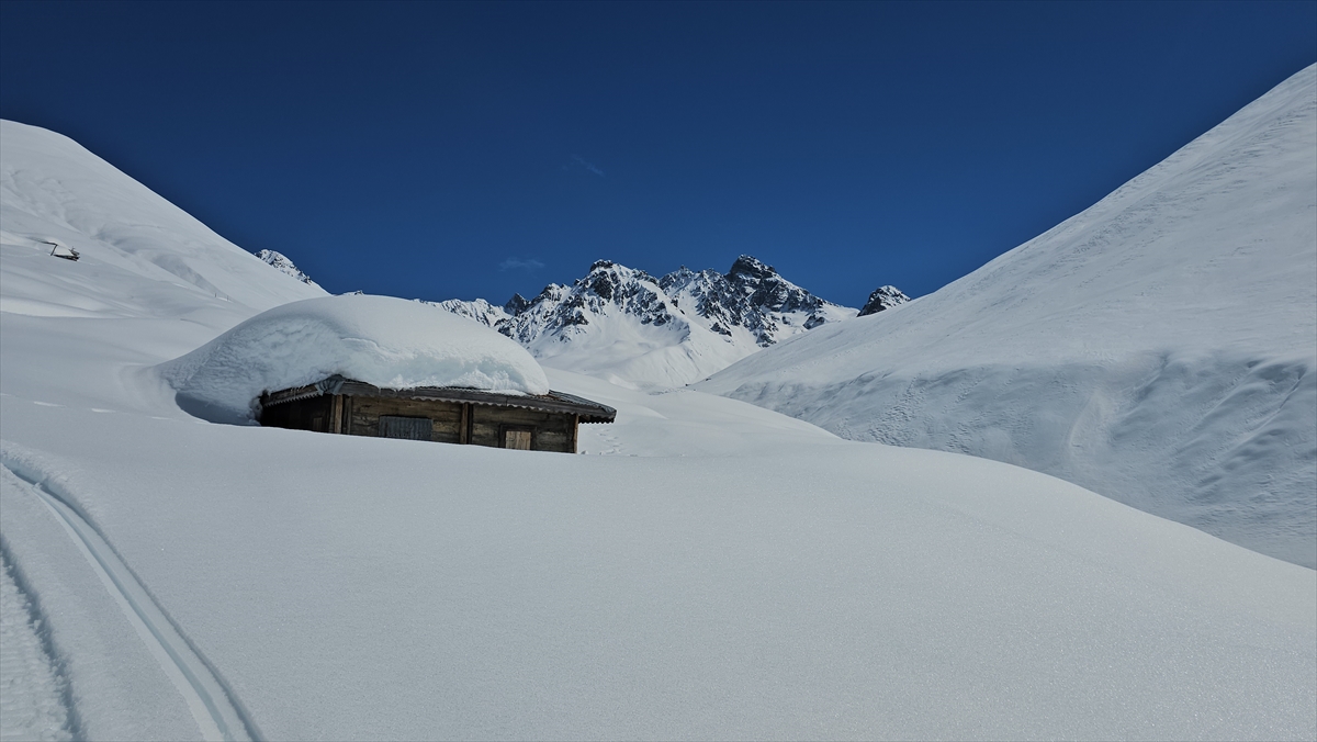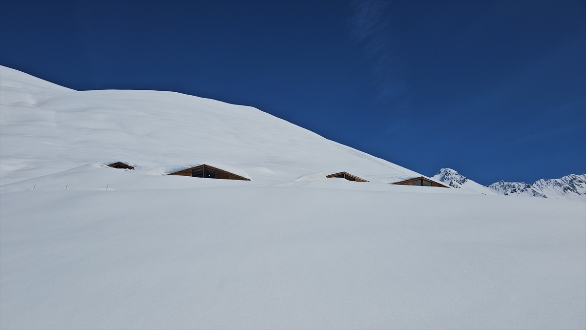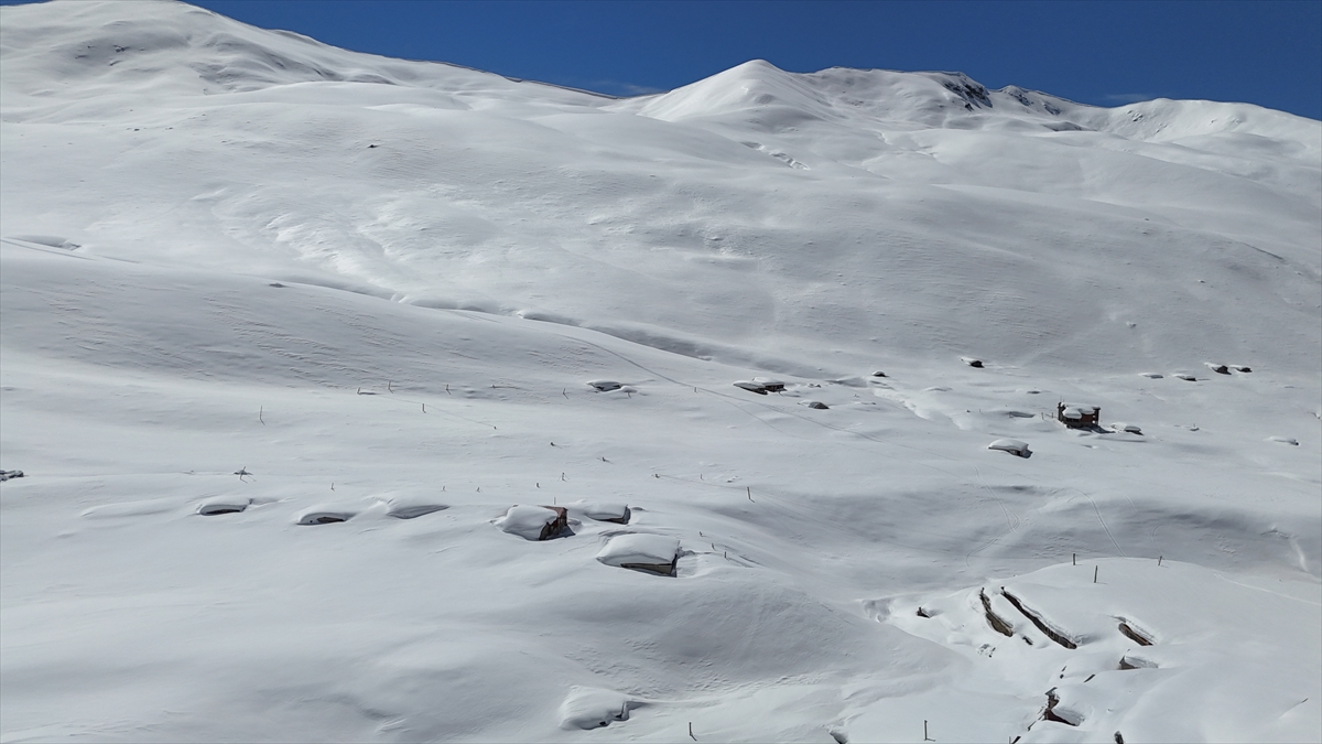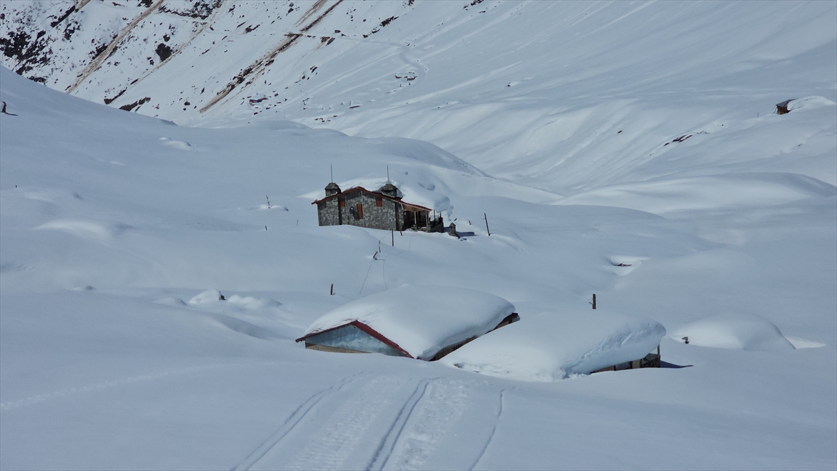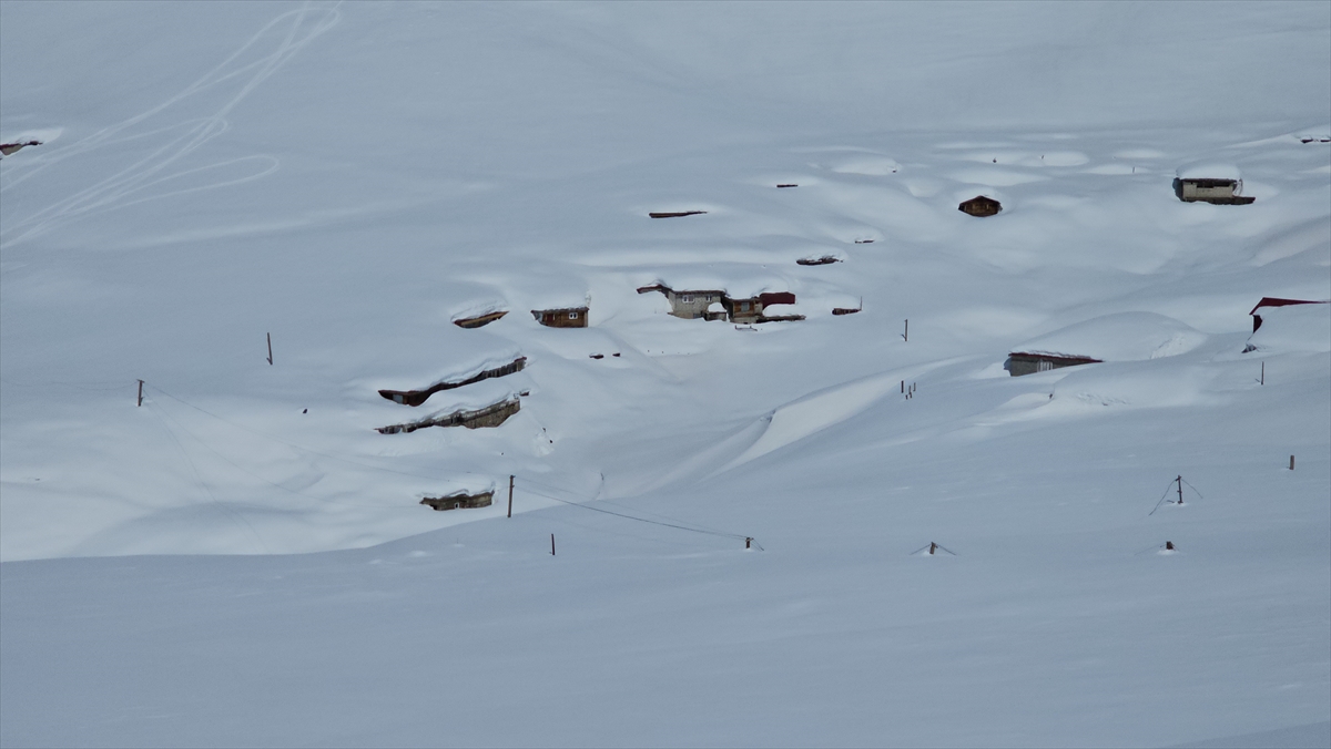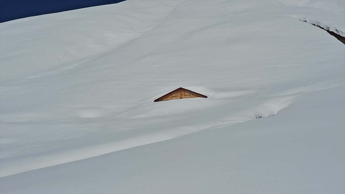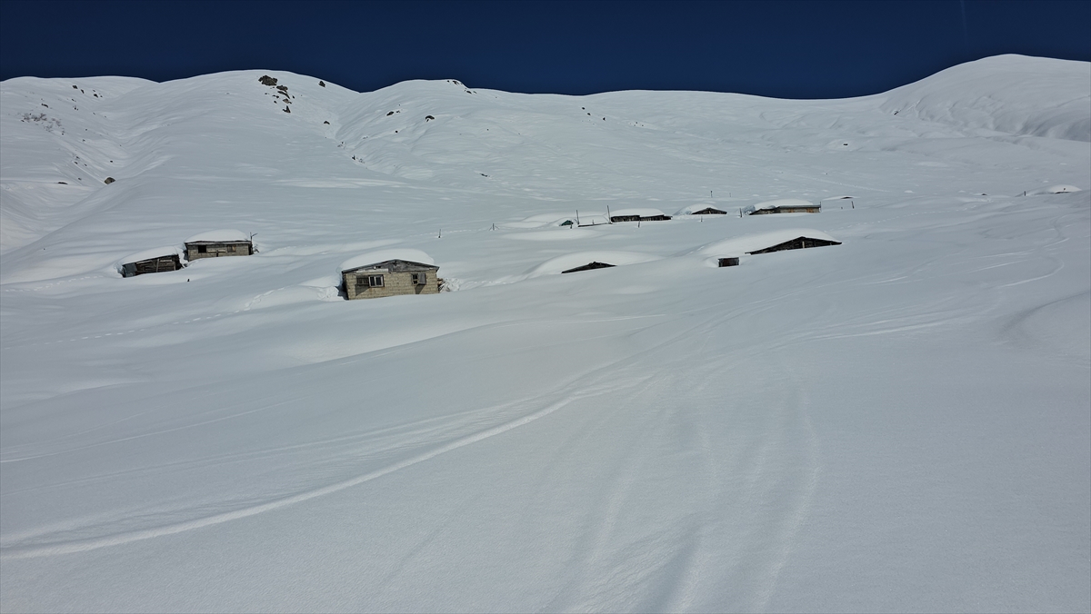 Rize'nin Çamlıhemşin ilçesinde etkili olan kar yağışının ardından yüksek kesimlerdeki yayla evleri beyaz örtünün altında kaldı.