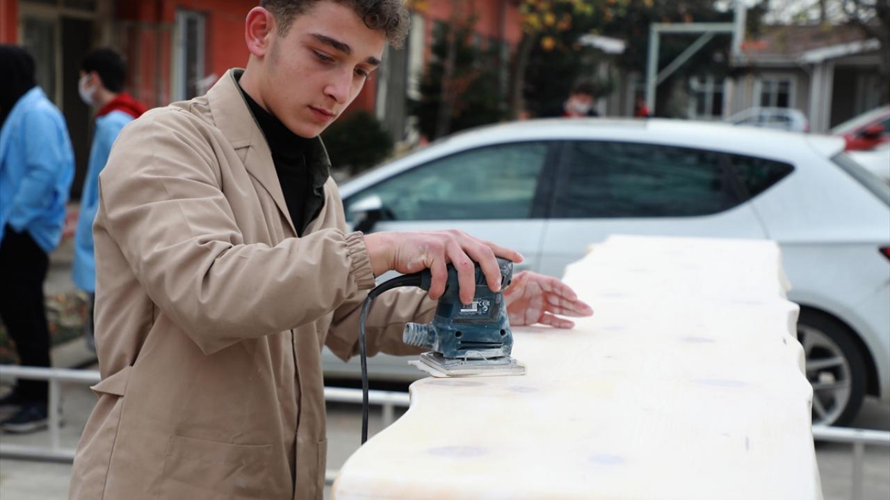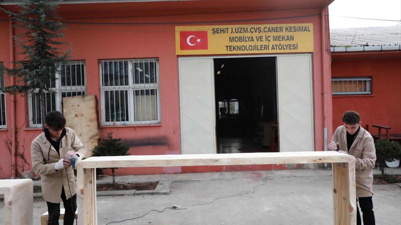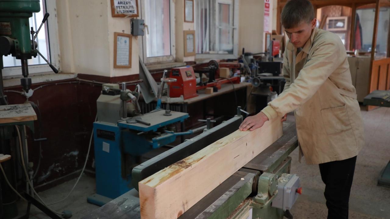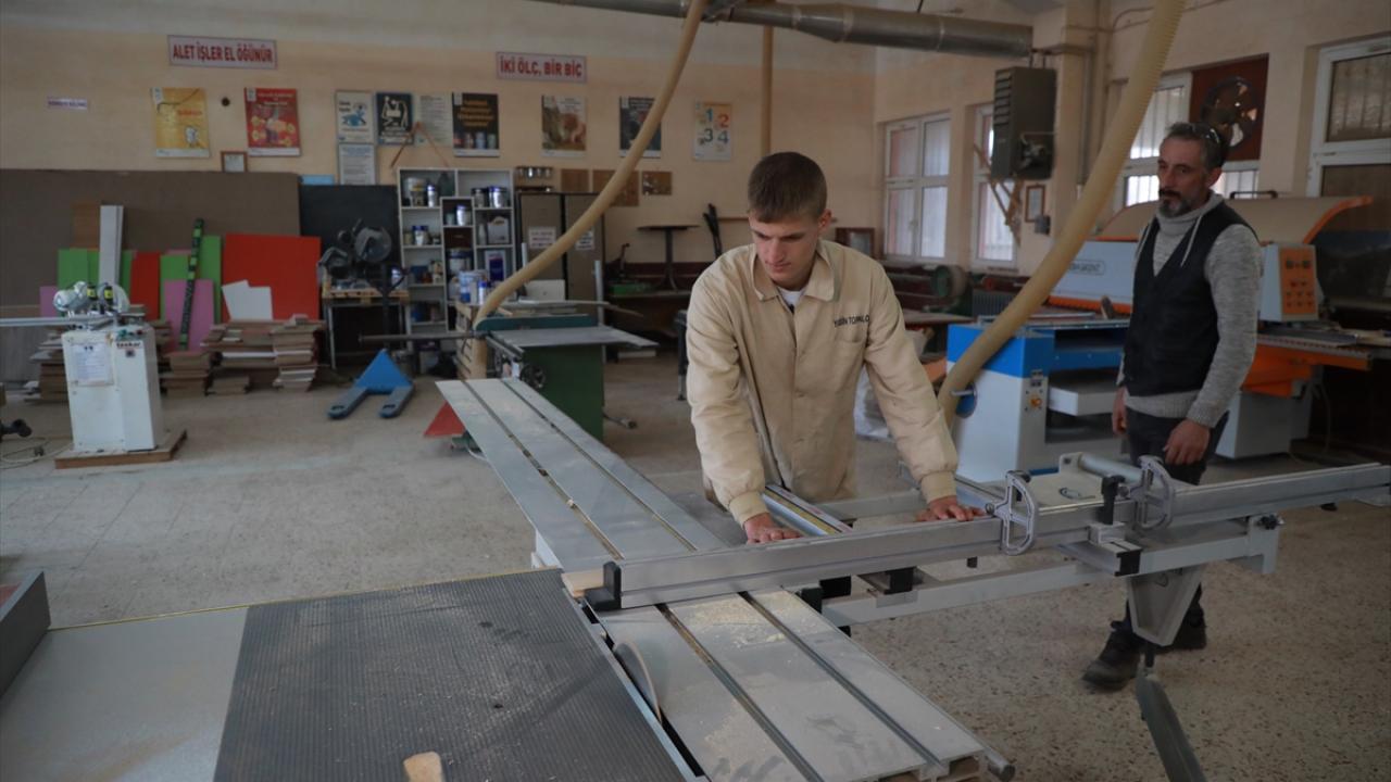 Bu doğrultuda Bakanlık ve iş insanlarınca mobilya bölümündeki ekipmanların yenilendiği okulda öğrenciler, masa, dolap gibi eşya üretimine başladı.