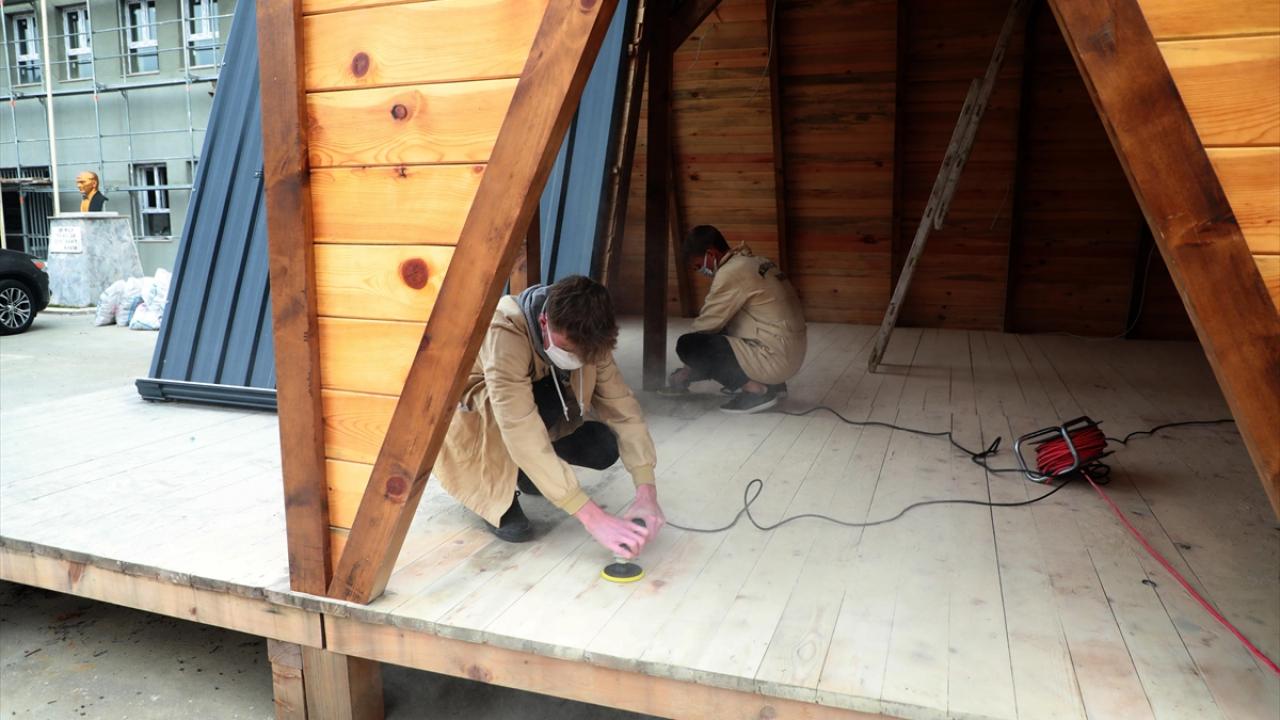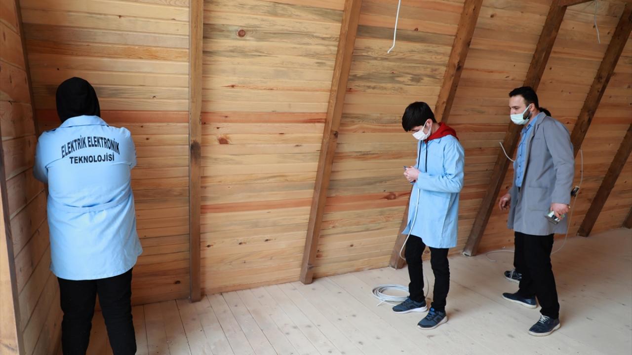 Meslek lisesi öğrencileri, iş insanlarının sağladığı malzeme desteğiyle tanıtım amacıyla kütüphane olarak kullanılmasına karar verilen ilk bungalovun yapımını tamamladı.