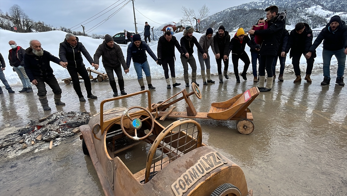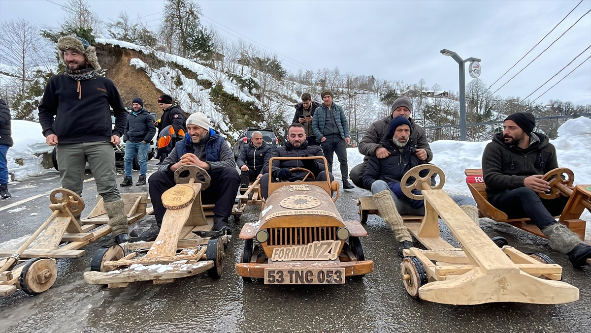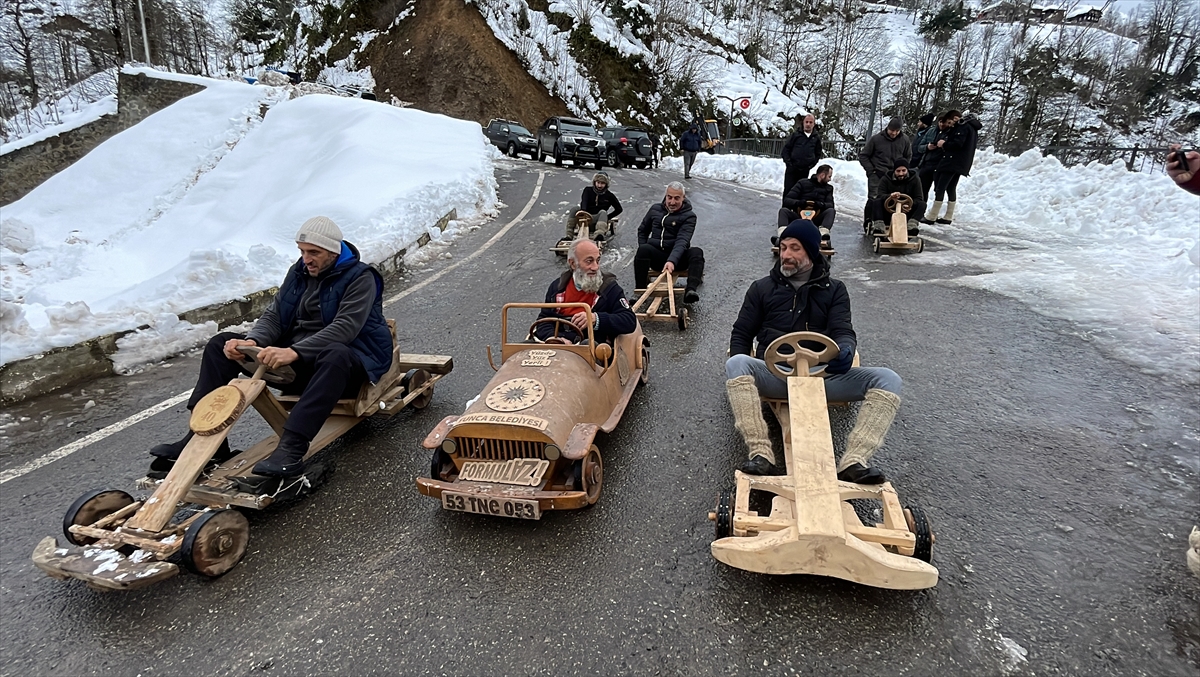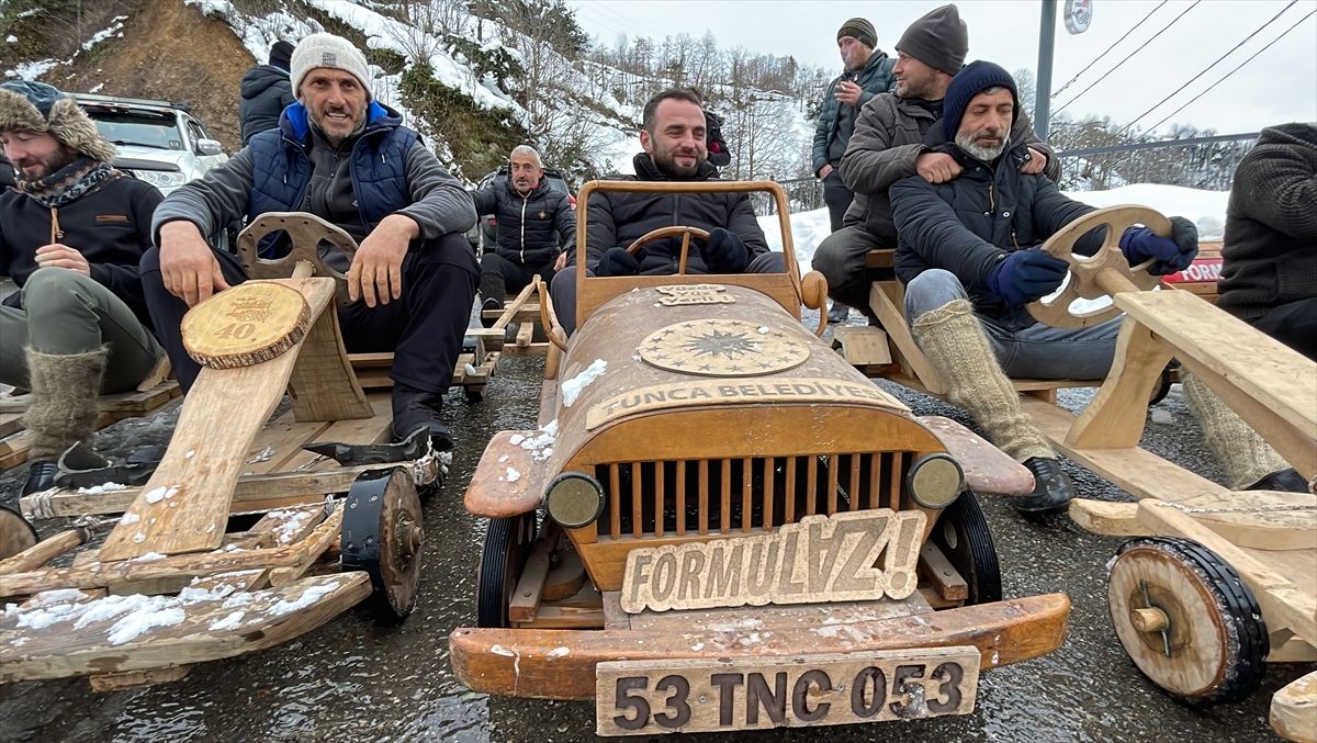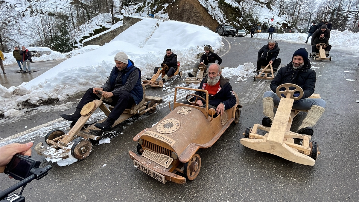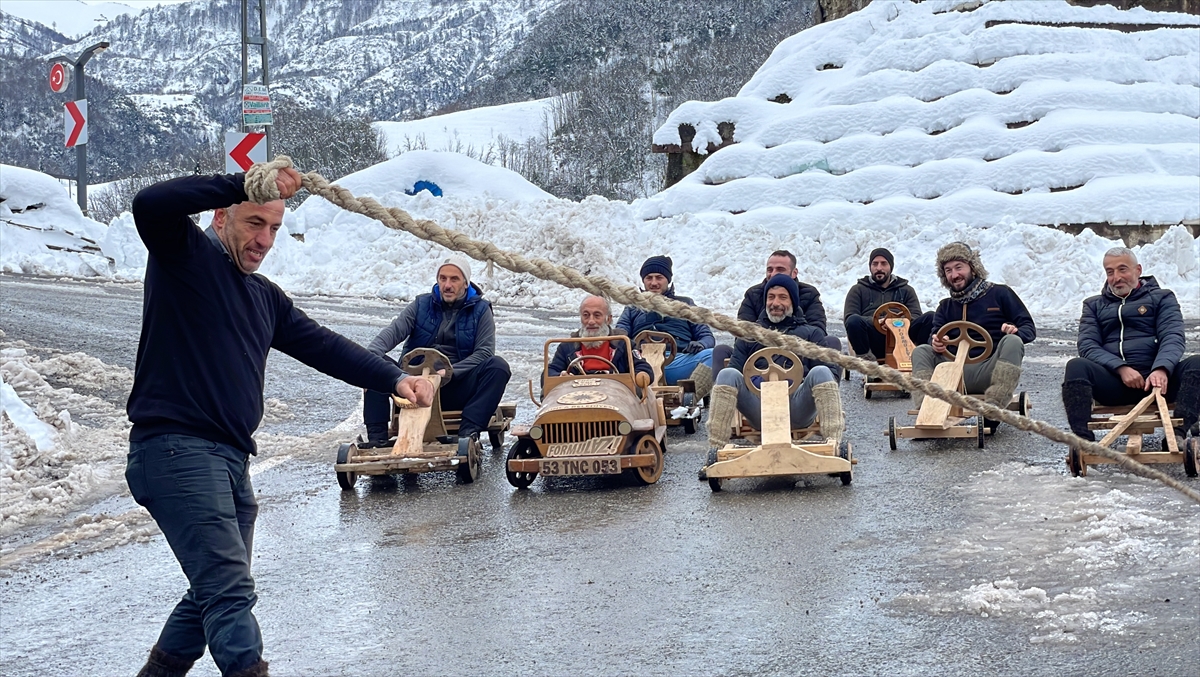 Ardeşen-Tunca arasında ulaşımın sağlandığı yola tahta arabalarıyla gelen bazı belde sakinleri, yer yer kar bulunan 2 kilometrelik güzergahta eğlenceli anlar yaşadı.