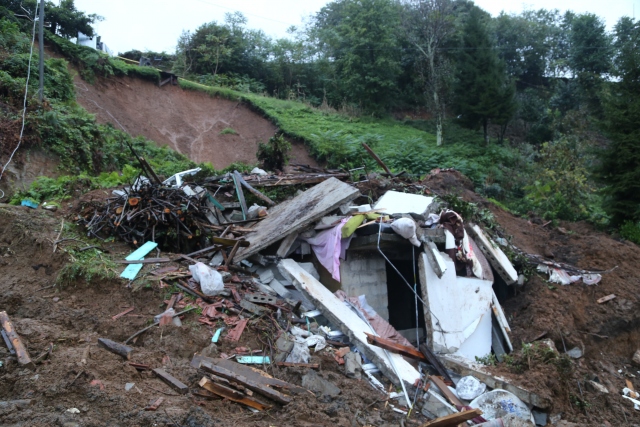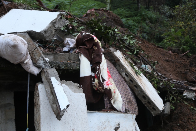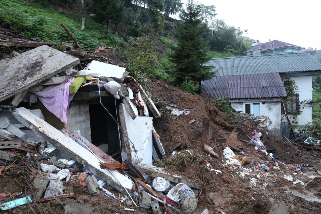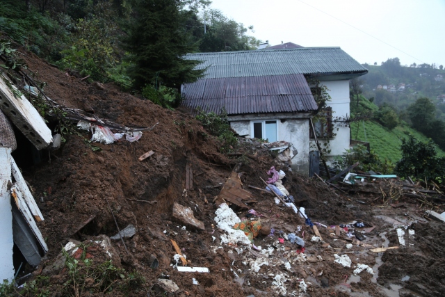 Rize'nin Pazar ilçesine bağlı Aktaş Köyünde meydana gelen toprak kaymasında çöken iki katlı evin altında kalan Kemal ve Ümmiye Doğan çifti hayatını kaybetti.