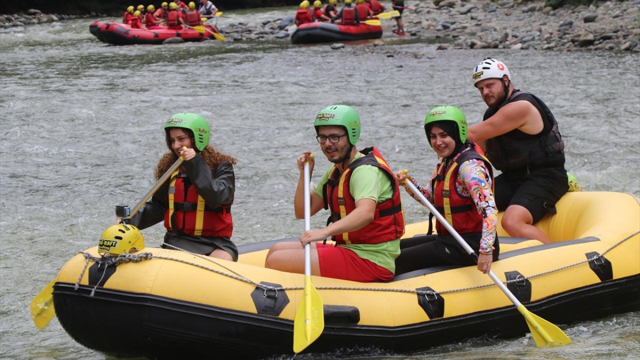 Serinlemek ve adrenalin dolu anlar yaşamak isteyenler, Fırtına Deresi`ndeki yaklaşık 10 kilometrelik rafting turlarına katıldı.