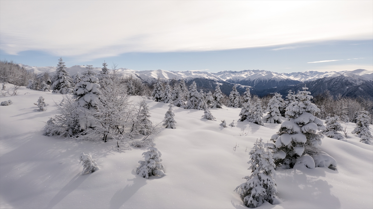 İkizdere ilçesinin yüksek kesimleri kar yağışının ardından farklı bir güzelliğe bürünürken, ziyaretçilerine güzel manzaralar sunuyor.