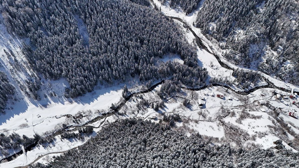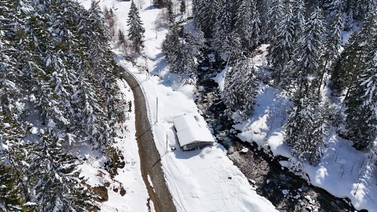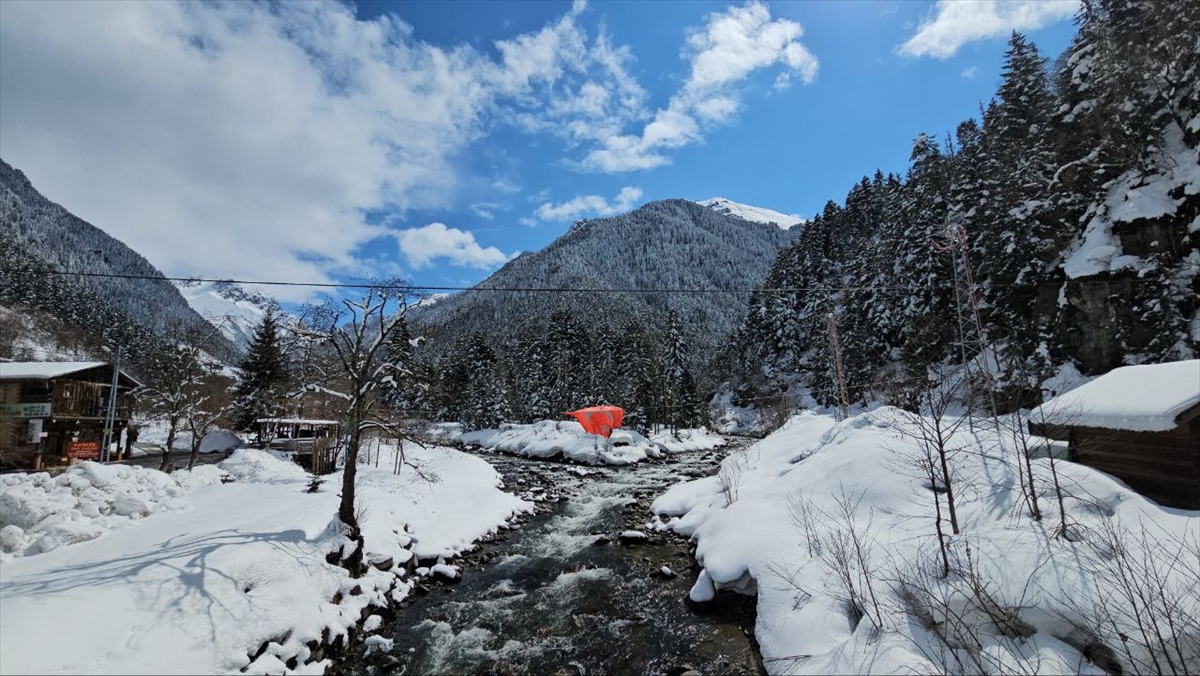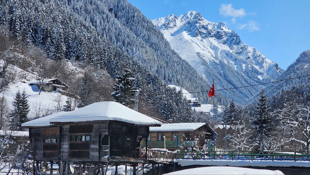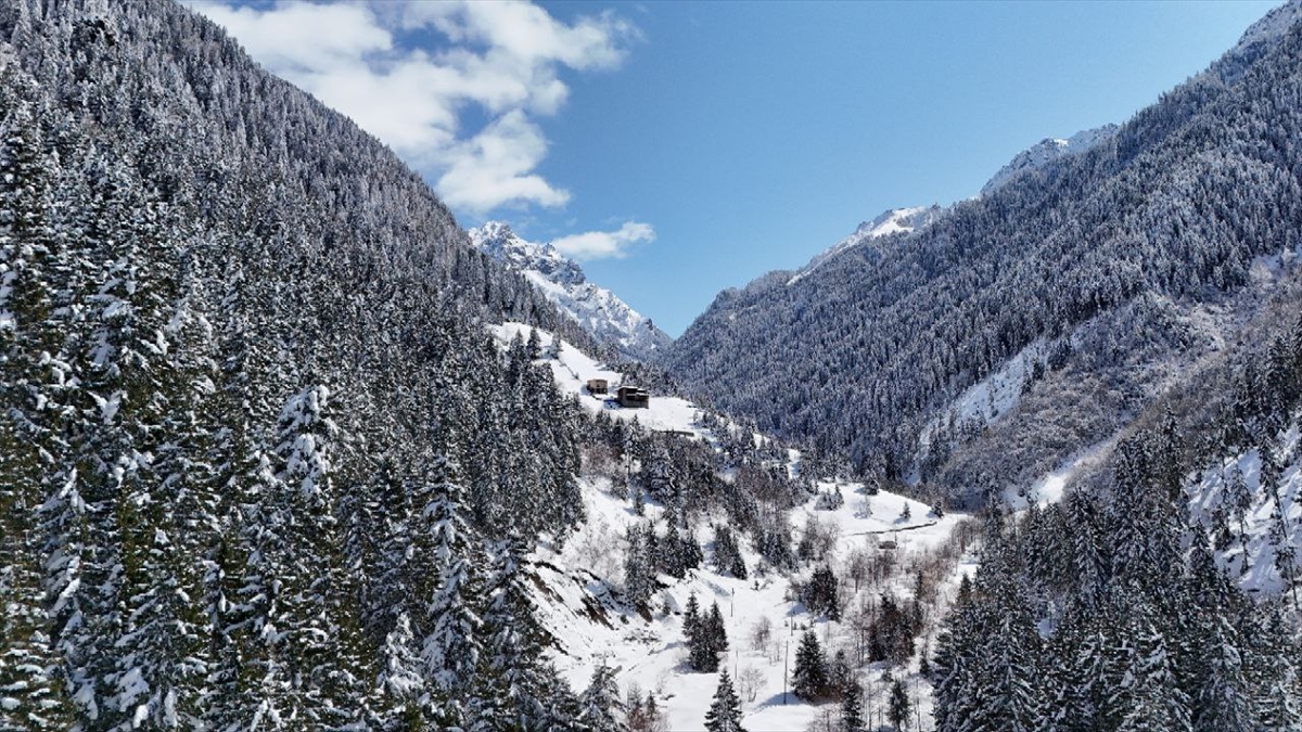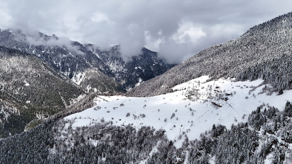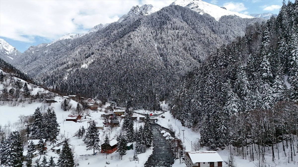 Rize'nin Çamlıhemşin ilçesine bağlı Çat köyü, Elevit ve Verçenik vadisi, kar yağışının ardından beyaz büründü.