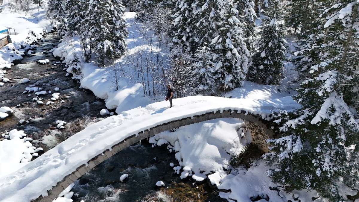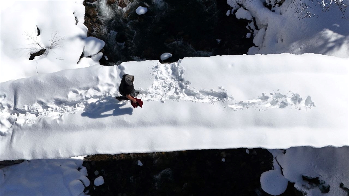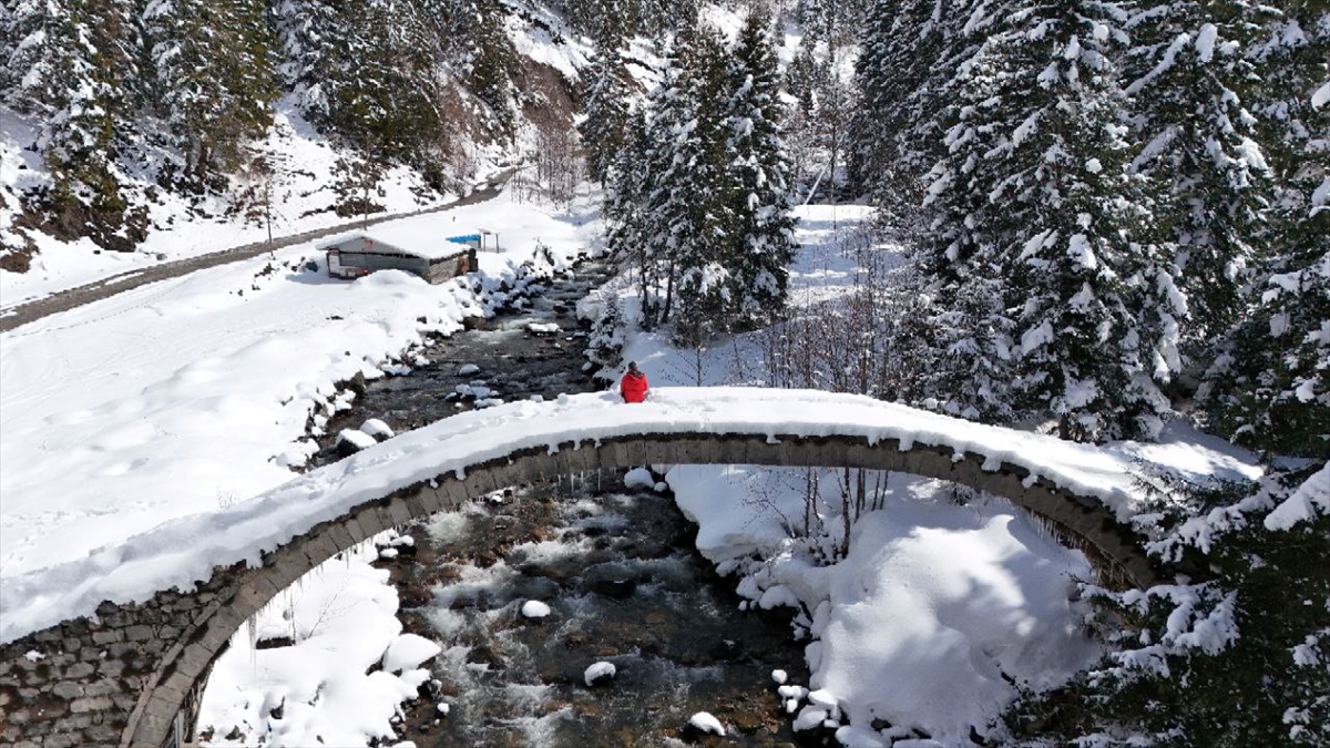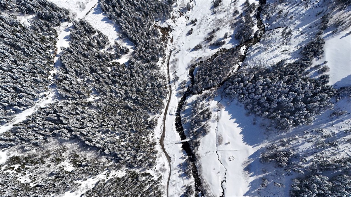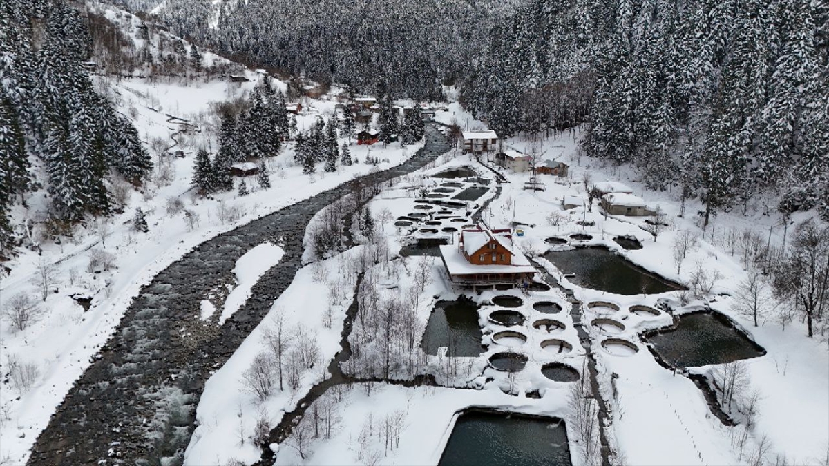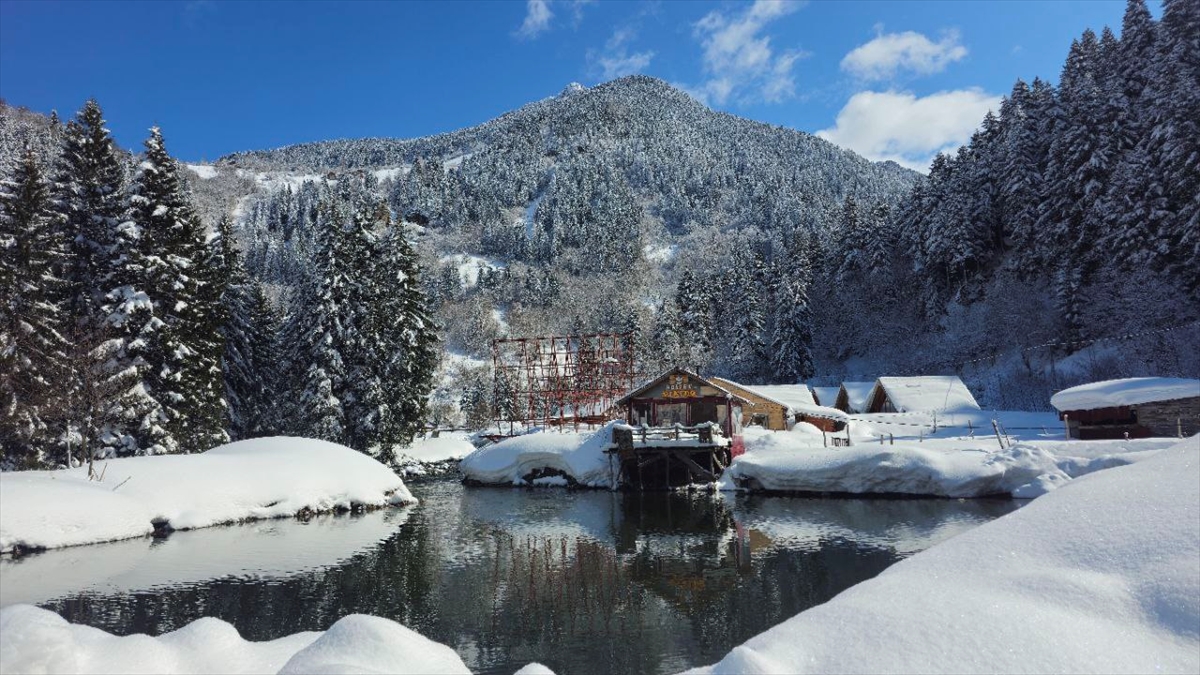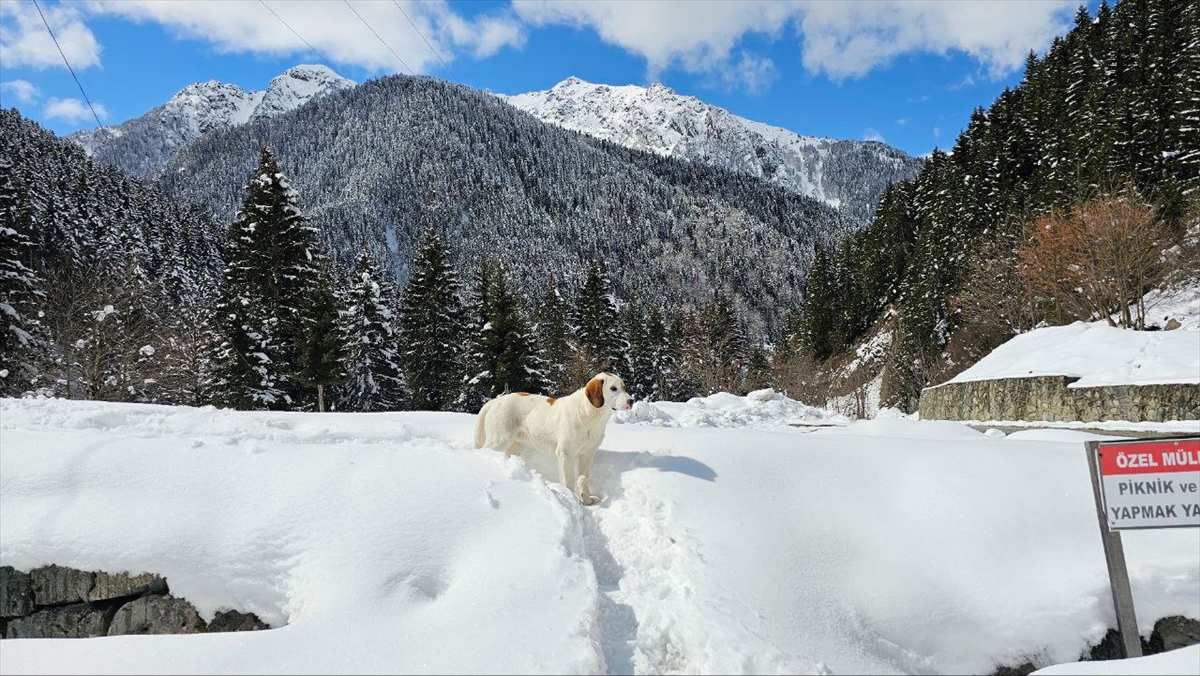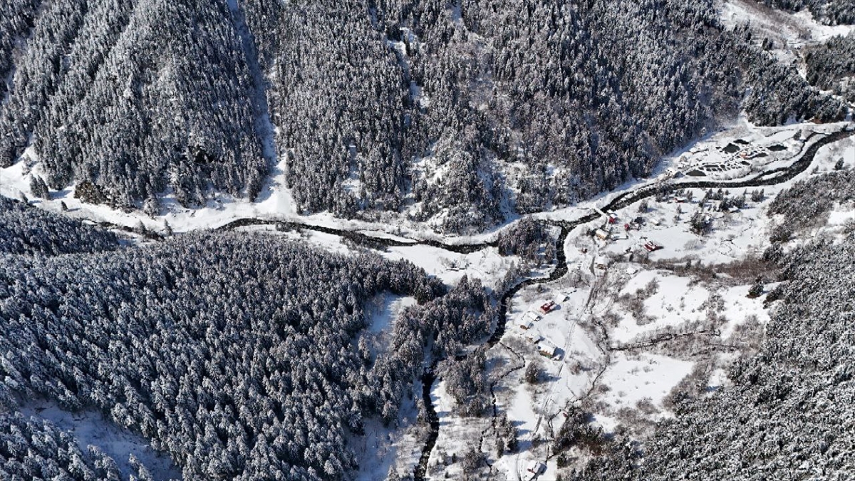 Rize'nin Çamlıhemşin ilçesine bağlı Çat köyü, Elevit ve Verçenik vadisi, kar yağışının ardından beyaz büründü.