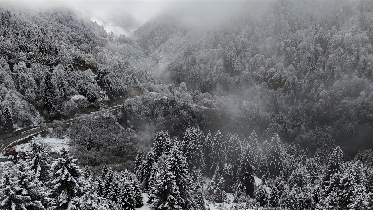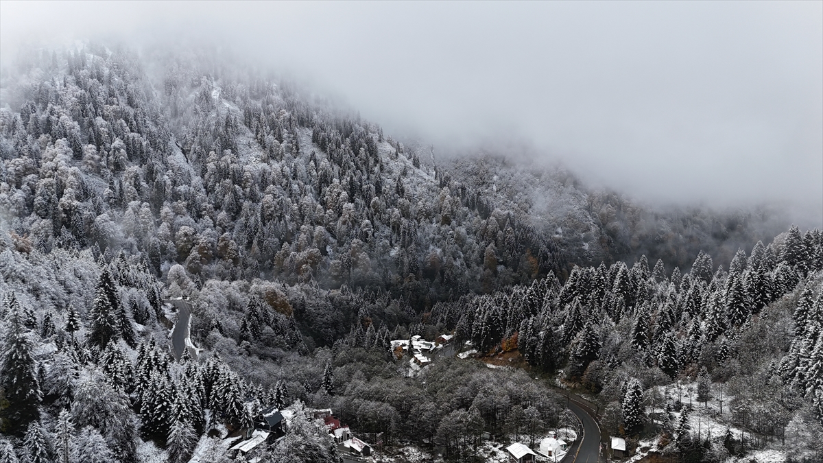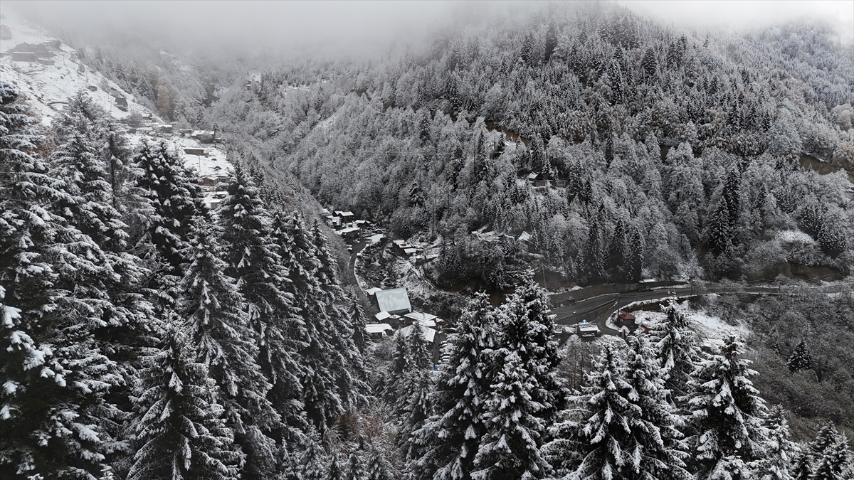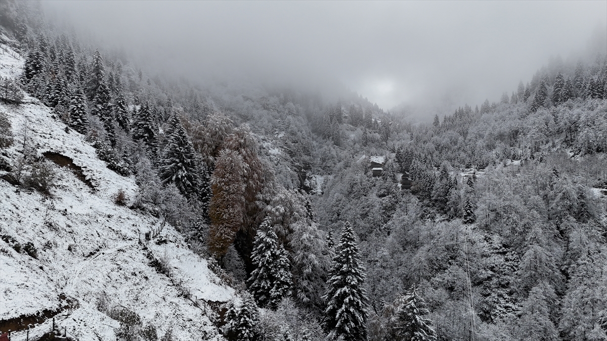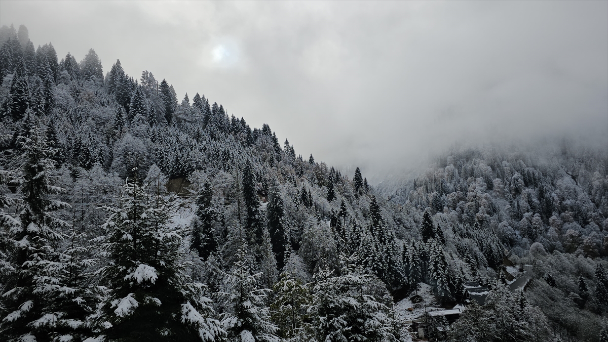 Rize'nin yüksek kesimleri kar yağışı sonrası beyaza büründü.