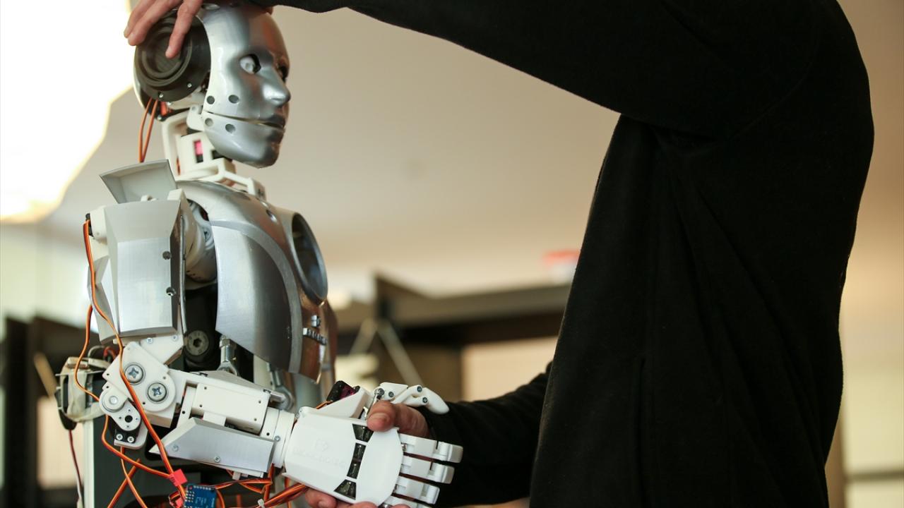"Cuma" adı verilen, TEKNOFEST`te geçen yıl Eğitim Teknolojileri Çadırı`nda tanıtılan robotun yapay zeka ile görüntü işleme, dil çözümleme, duygu çözümleme, sorulan sorulara cevap verebilme gibi beceriler kazanması için çalışılıyor.