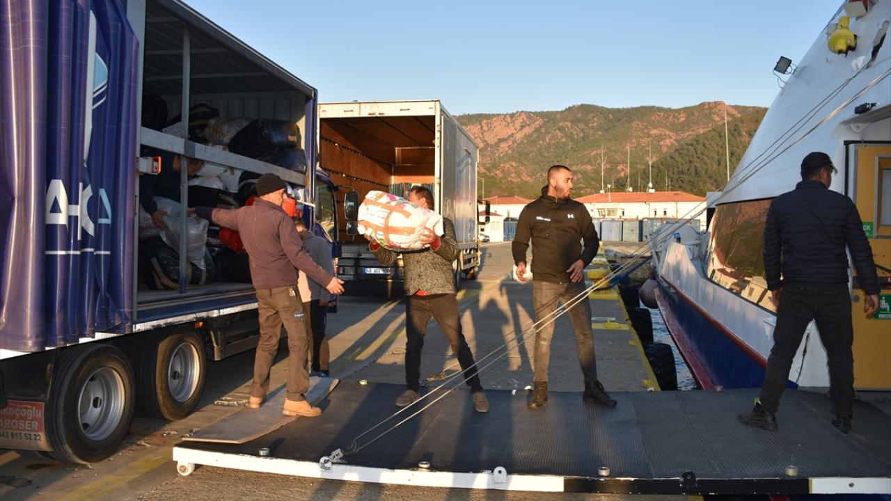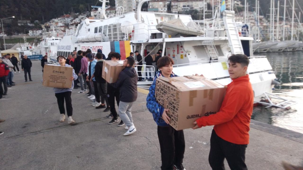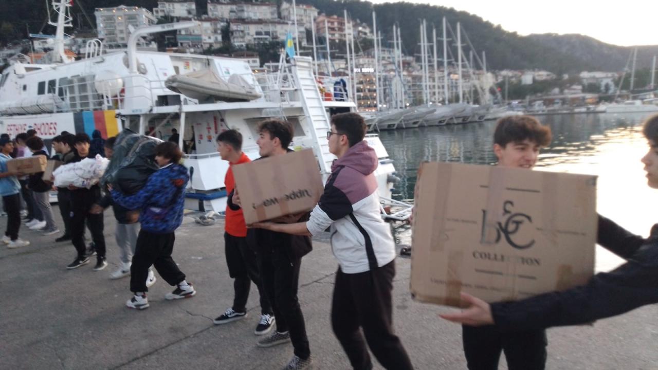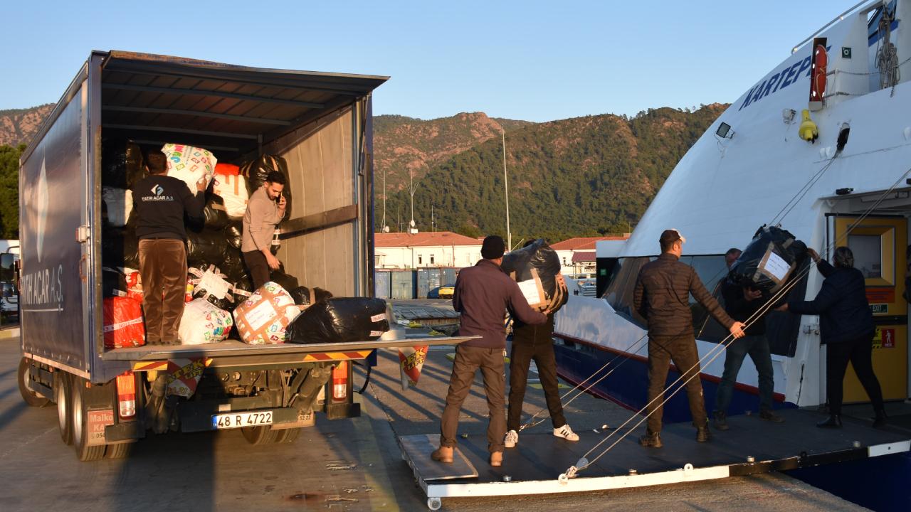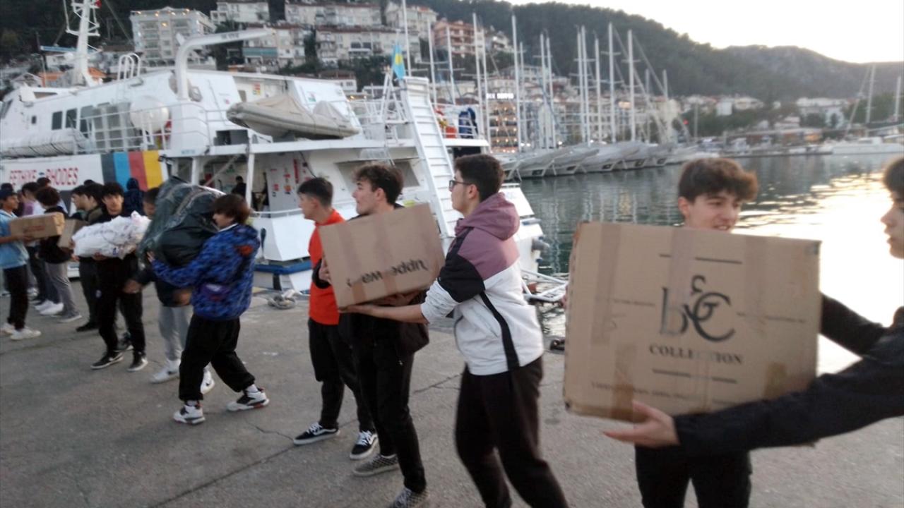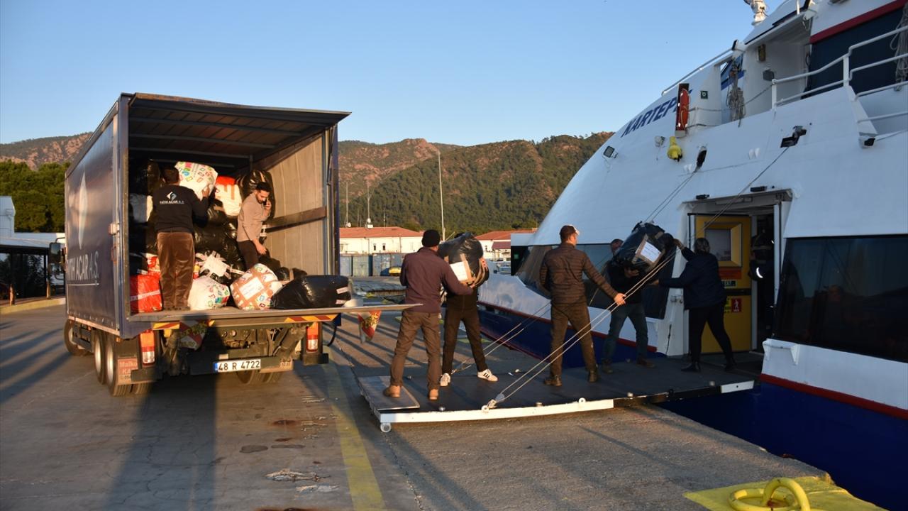 Toplanan yardım kolileri, Rodos Başkonsolosluğu desteğiyle Kartepe feribotu ile Rodos Adası`ndan Muğla`nın Marmaris ilçesine getirildi.