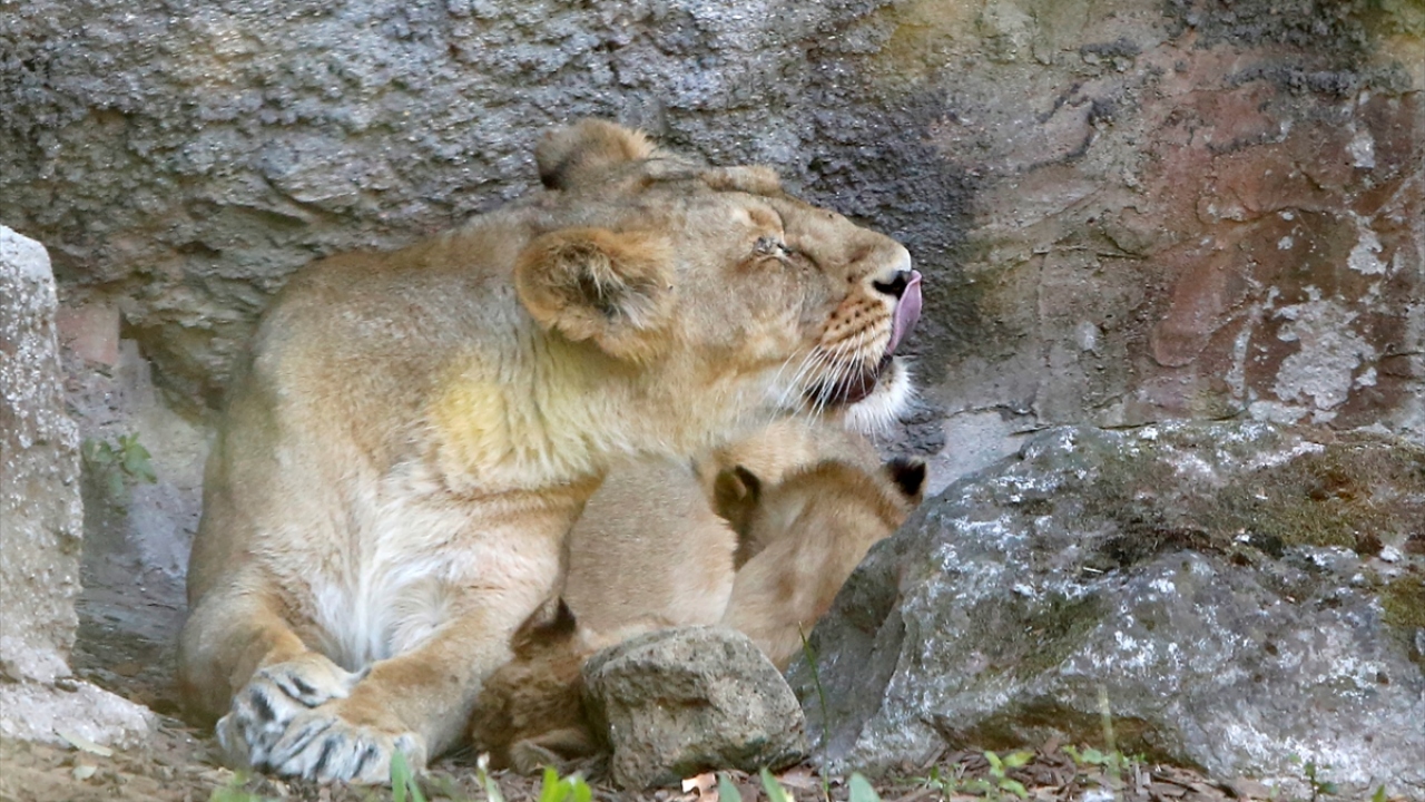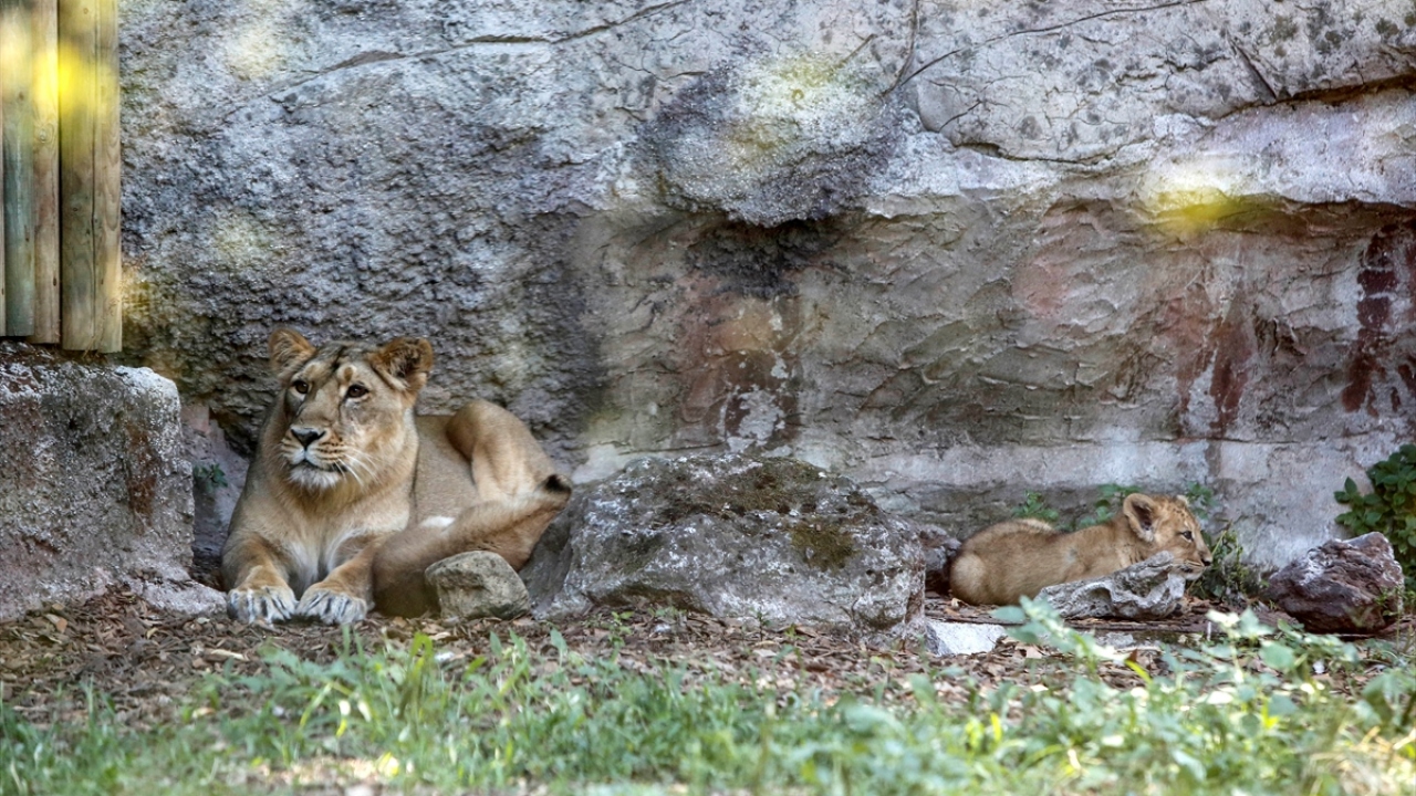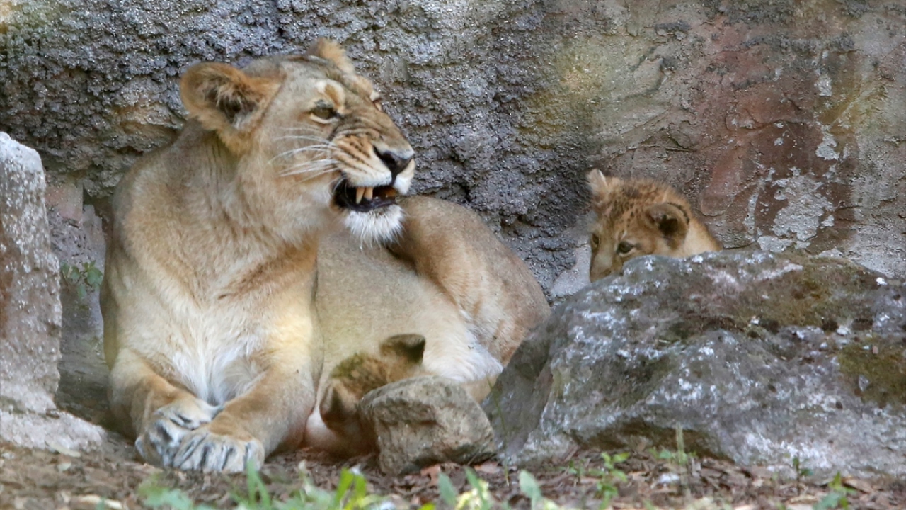 İtalya'nın başkenti Roma'daki Bioparco Hayvanat bahçesinde, Sajani isimli dişi Asya aslanının (Panthera leo persica) yeni doğan iki yavrusu basına tanıtıldı.