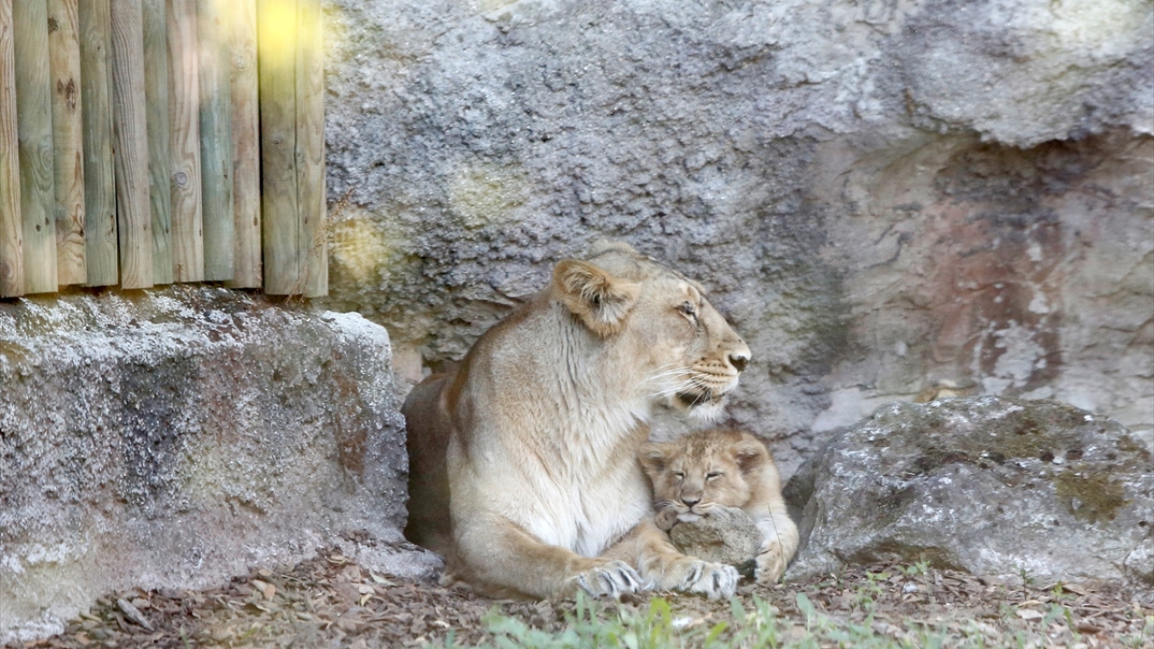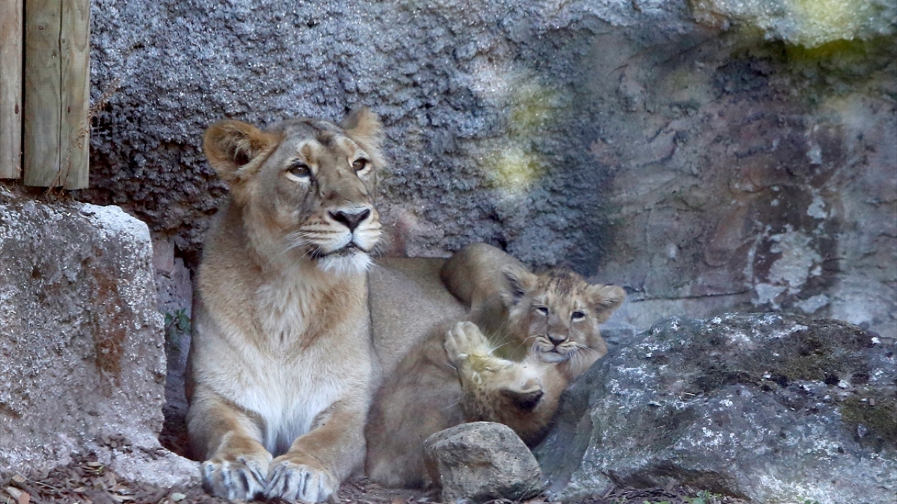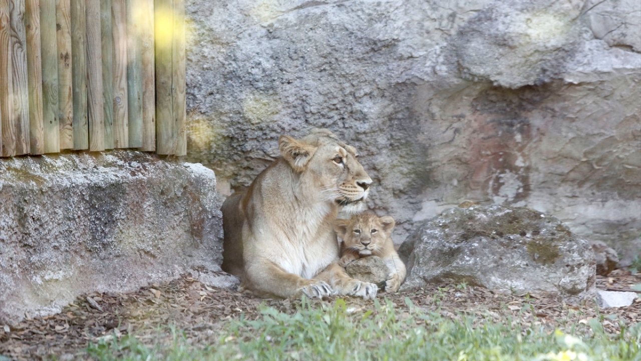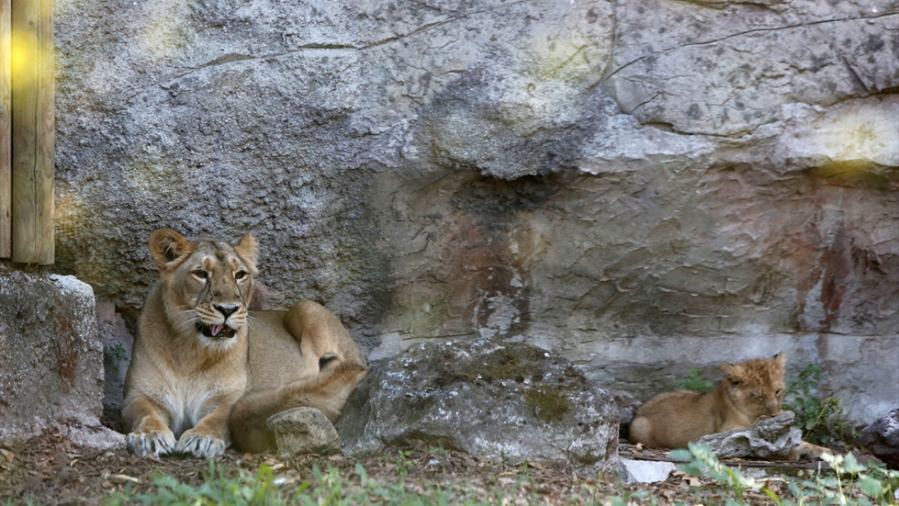 İtalya'nın başkenti Roma'daki Bioparco Hayvanat bahçesinde, Sajani isimli dişi Asya aslanının (Panthera leo persica) yeni doğan iki yavrusu basına tanıtıldı.