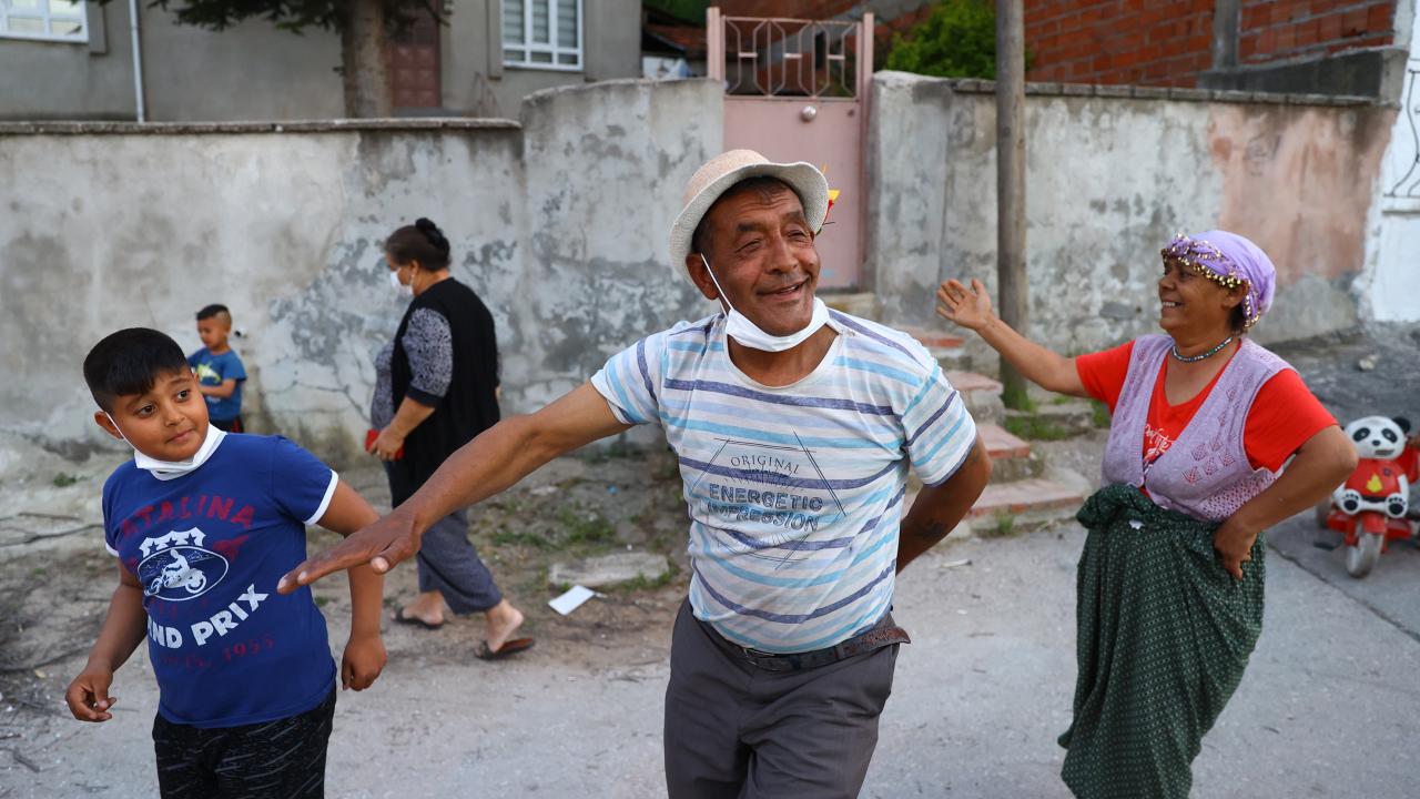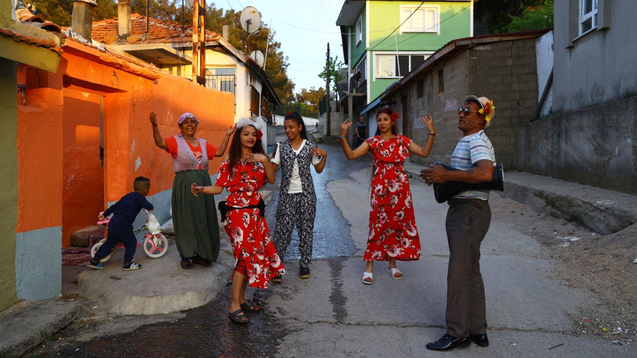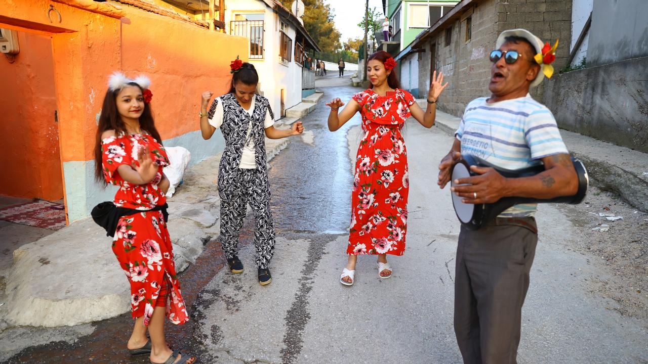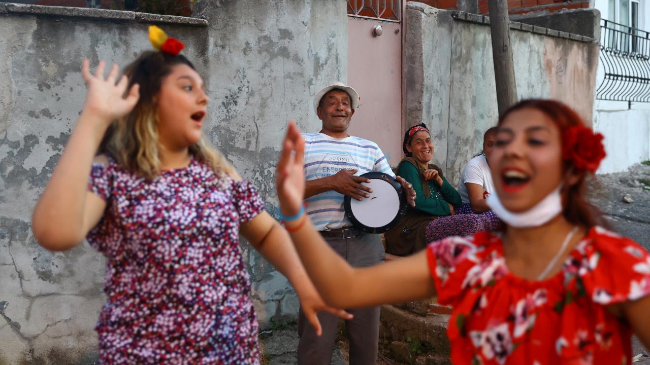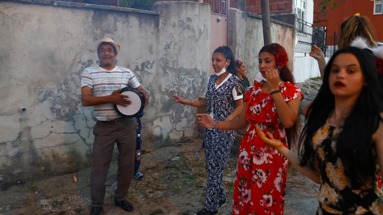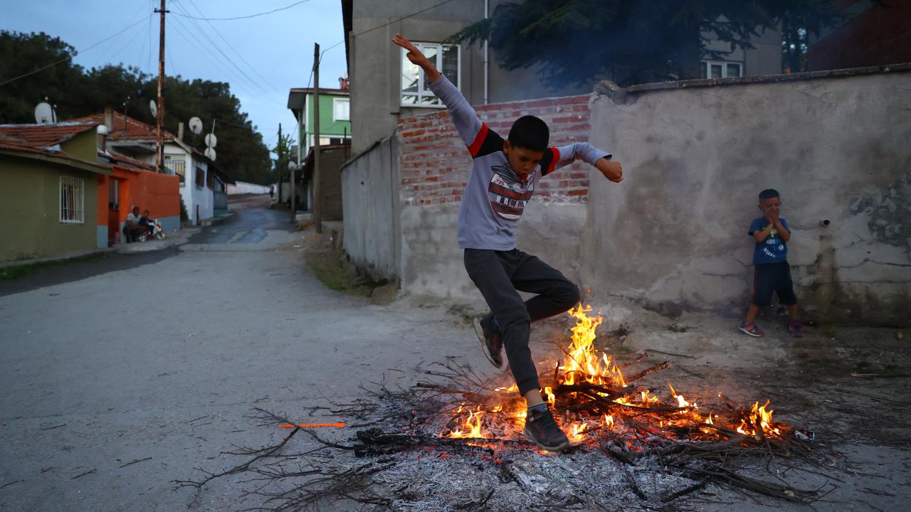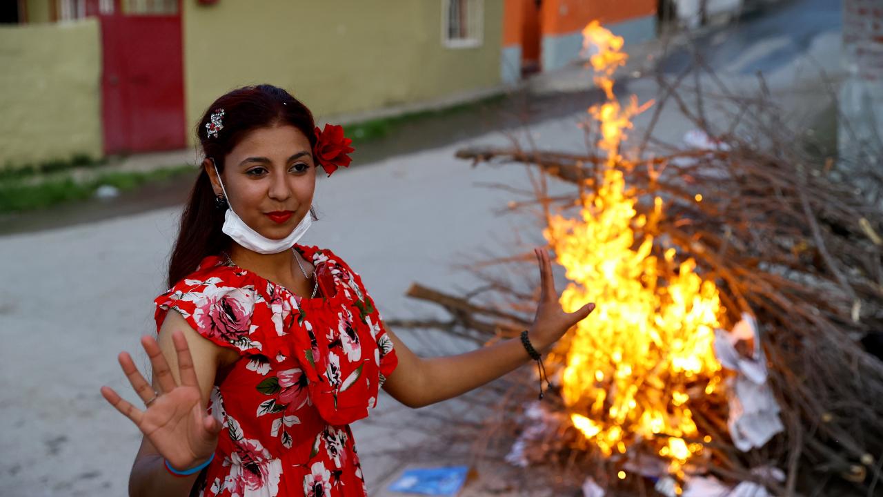 Evlerinin önünde ateş yakan romanlar, şarkılar eşliğinde dans etti, ateşin üzerinden atladı.