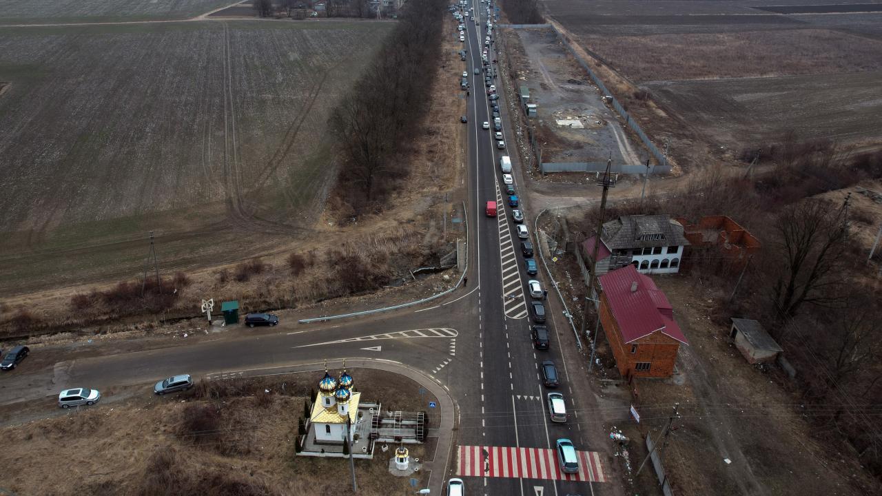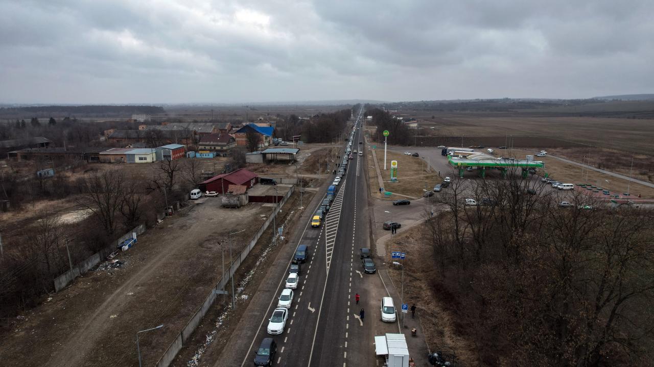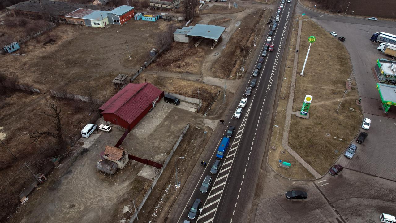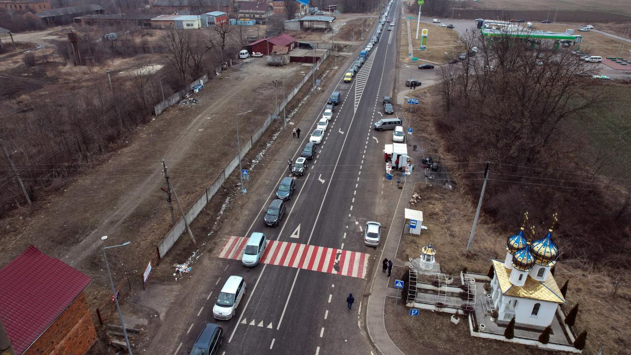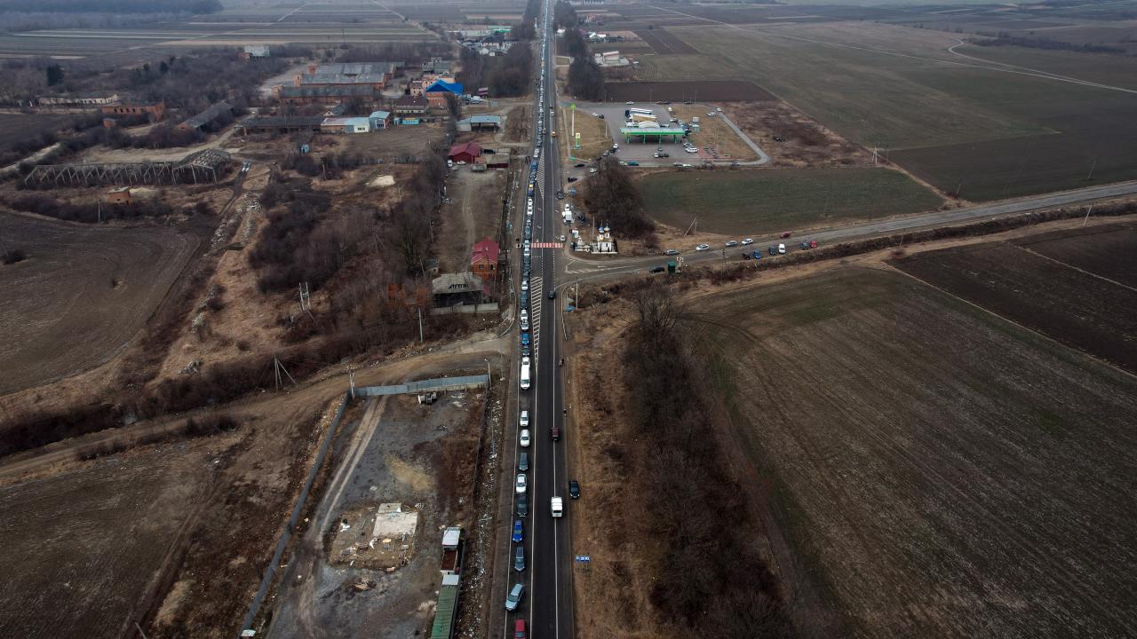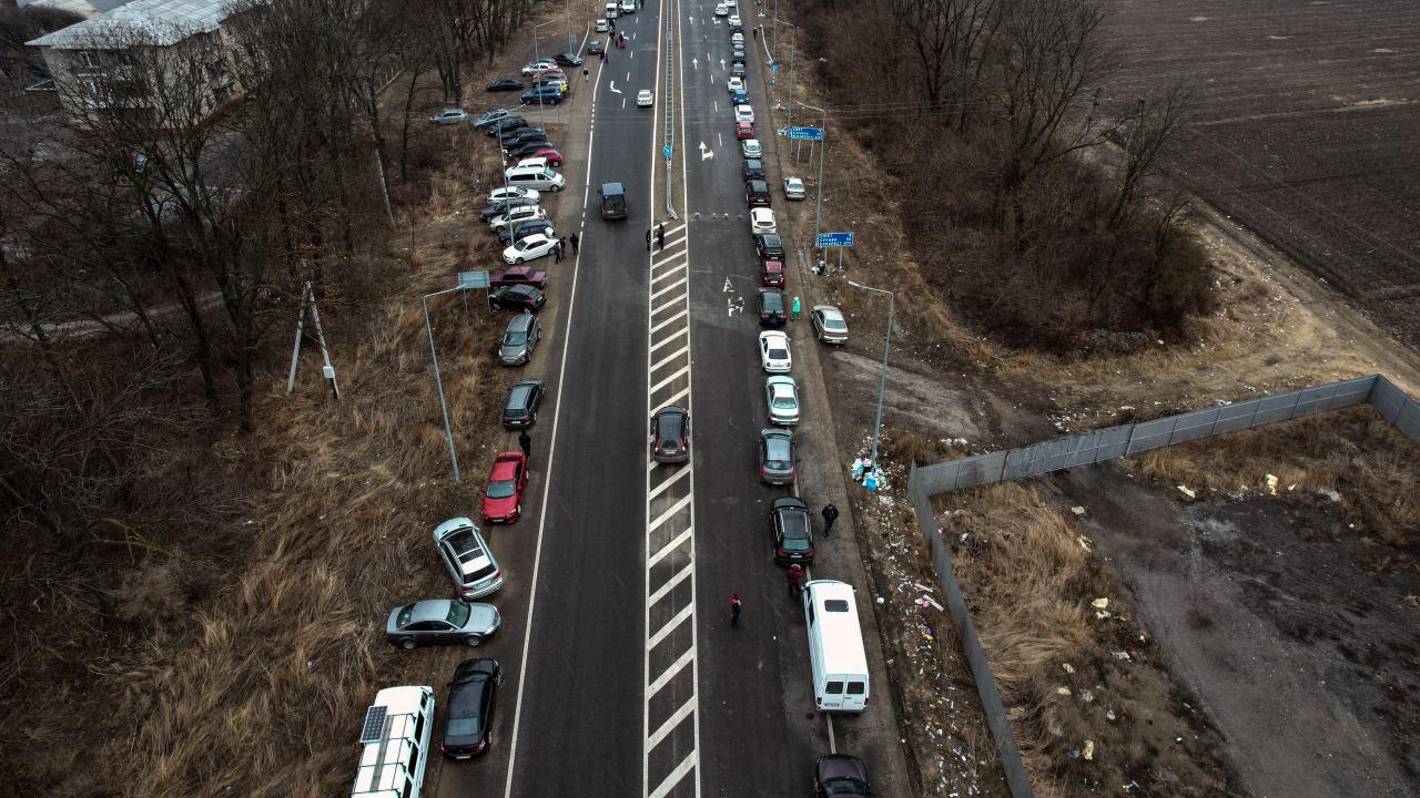 Rusya’nın Ukrayna saldırıları devam ederken ülkeden ayrılan Ukraynalılar, Romanya sınırında kilometrelerce uzun araç kuyrukları oluşturdu.