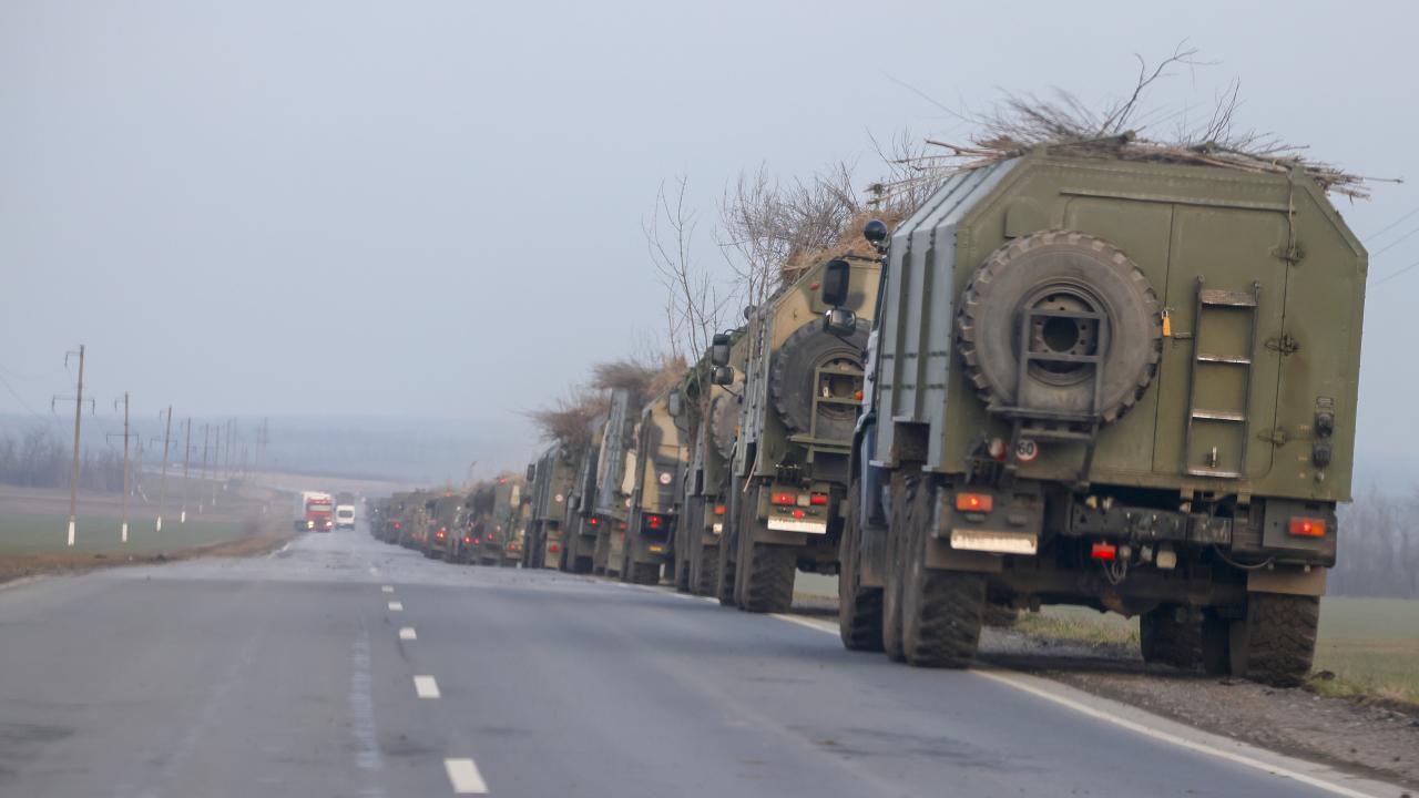 Rusya’nın Rostov bölgesinde Kuybuşevo yerleşim yeri yakınlarında Rus askeri araçlarının bulunduğu konvoyun Ukrayna’nın Donbas bölgesinin yer aldığı sınıra doğru ilerlediği görüldü.