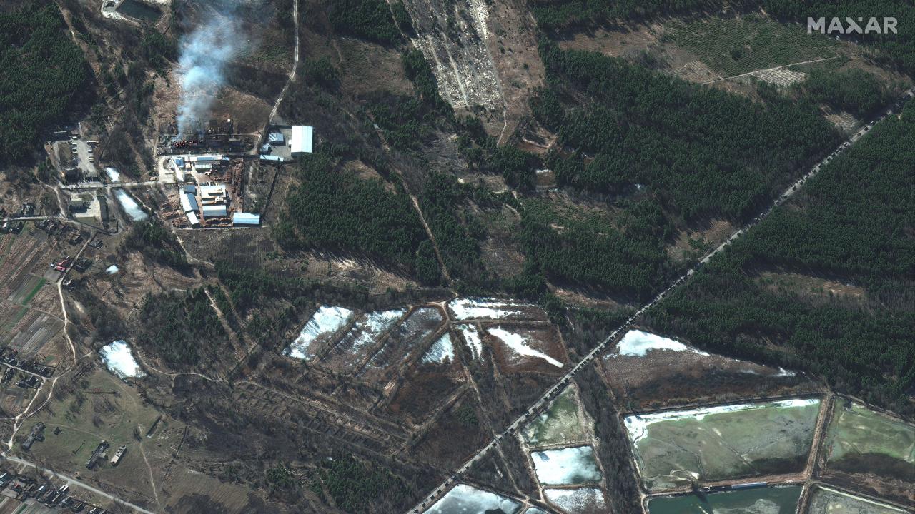 Daha önce Rus konvoyunun uzunluğunun 17 mil (27 km) olduğunu açıklayan Maxar Technologies şirketi, Kiev yakınlarına ulaşan Rus askeri konvoyunun aslında daha uzun olduğunu bildirdi. Şirket zırhlı araçlar, tanklar, çekili toplar ve diğer askeri araçlardan oluşan konvoyun uzunluğunun 40 milden (64 km) uzun olduğunu açıkladı.