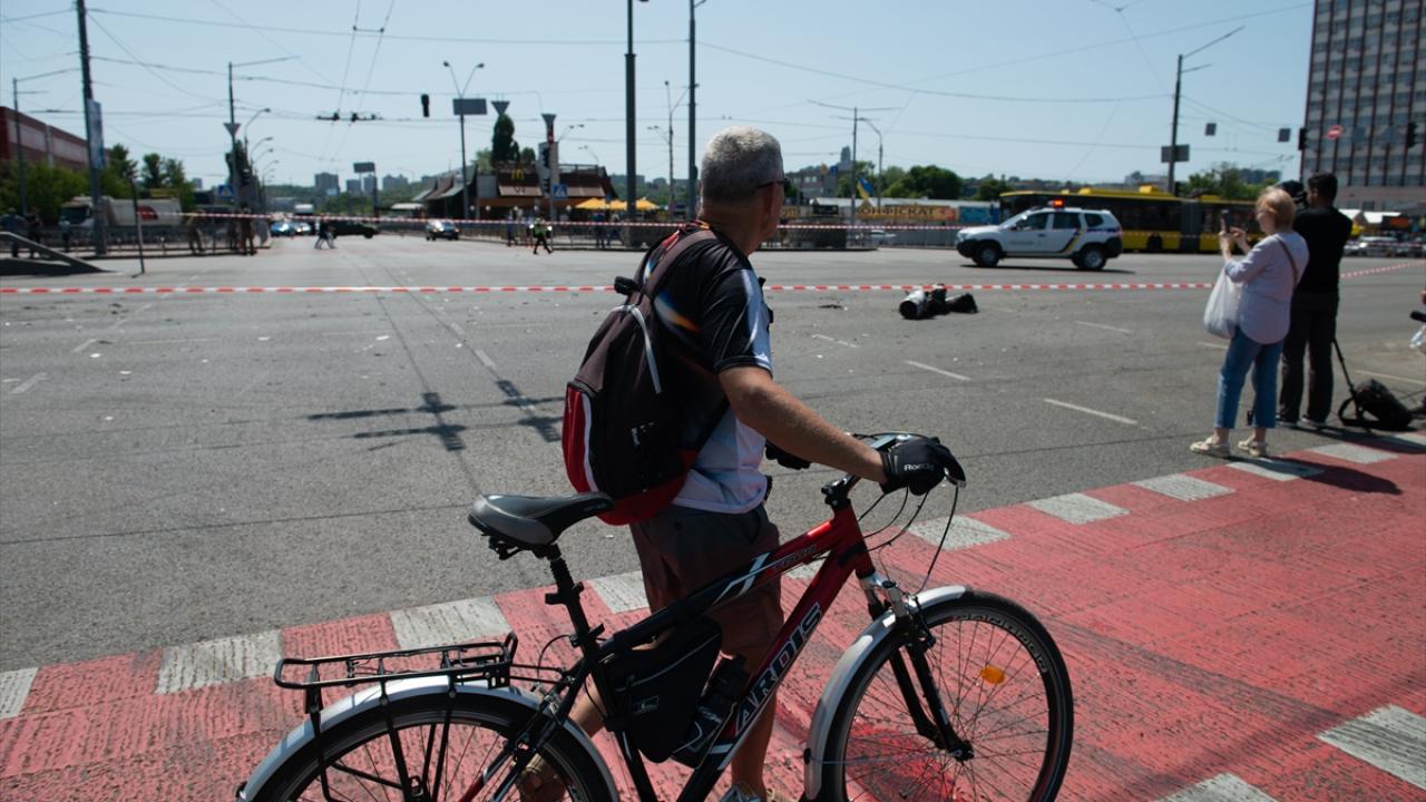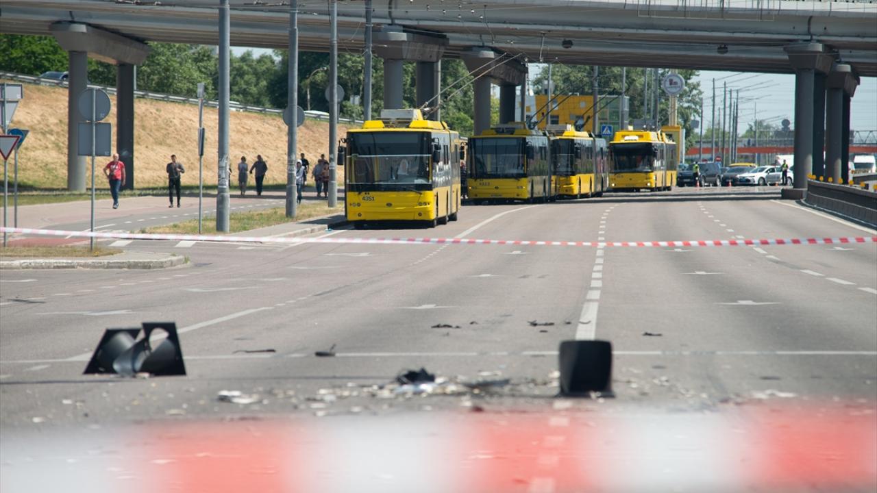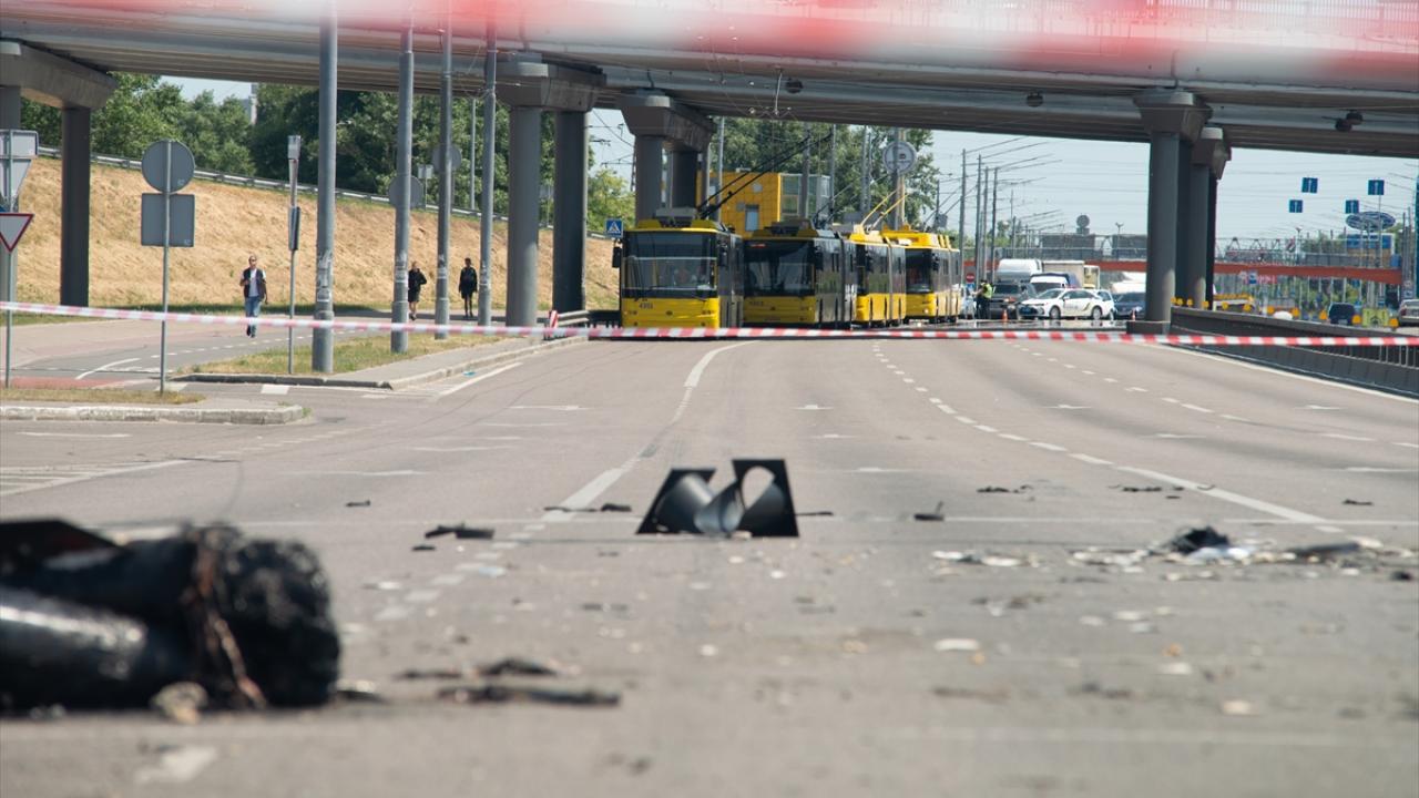 Rusya ile Ukrayna arasındaki savaş devam ederken, Ukrayna'nın başkenti Kiev'e gerçekleştirilen Rus hava saldırısı sonrası bir otoyola düşen roket kalıntıları çevreye zarar verdi.