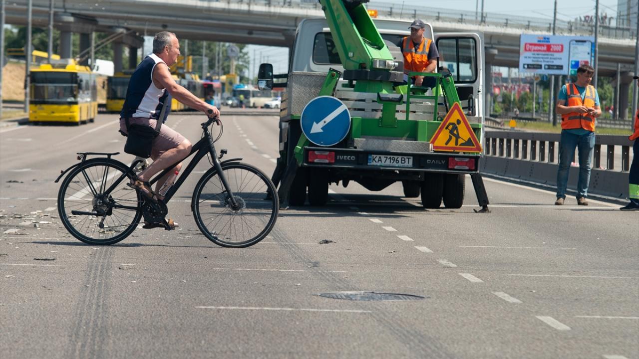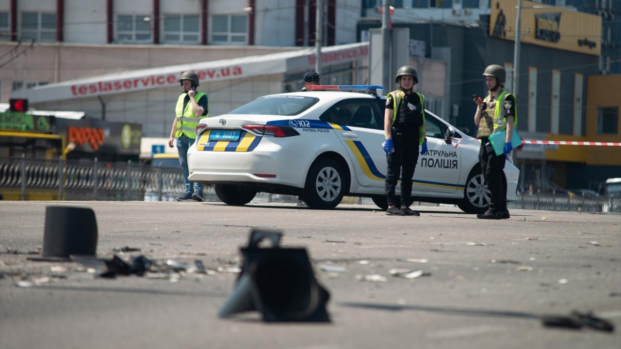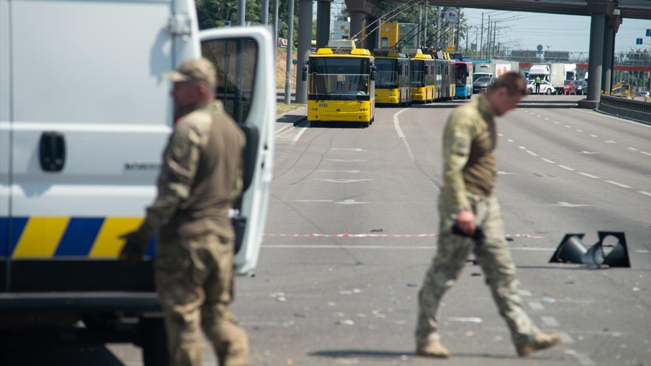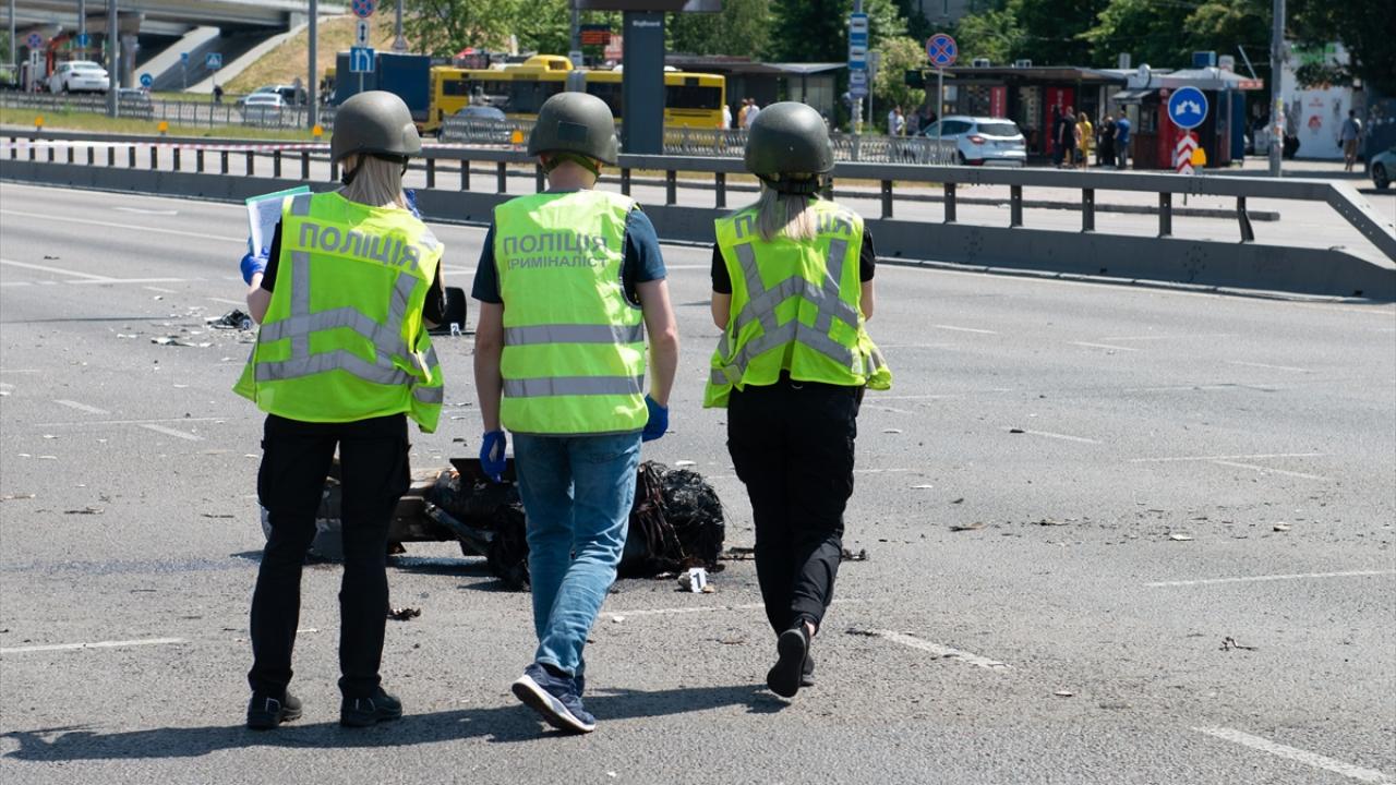 Rusya ile Ukrayna arasındaki savaş devam ederken, Ukrayna'nın başkenti Kiev'e gerçekleştirilen Rus hava saldırısı sonrası bir otoyola düşen roket kalıntıları çevreye zarar verdi.