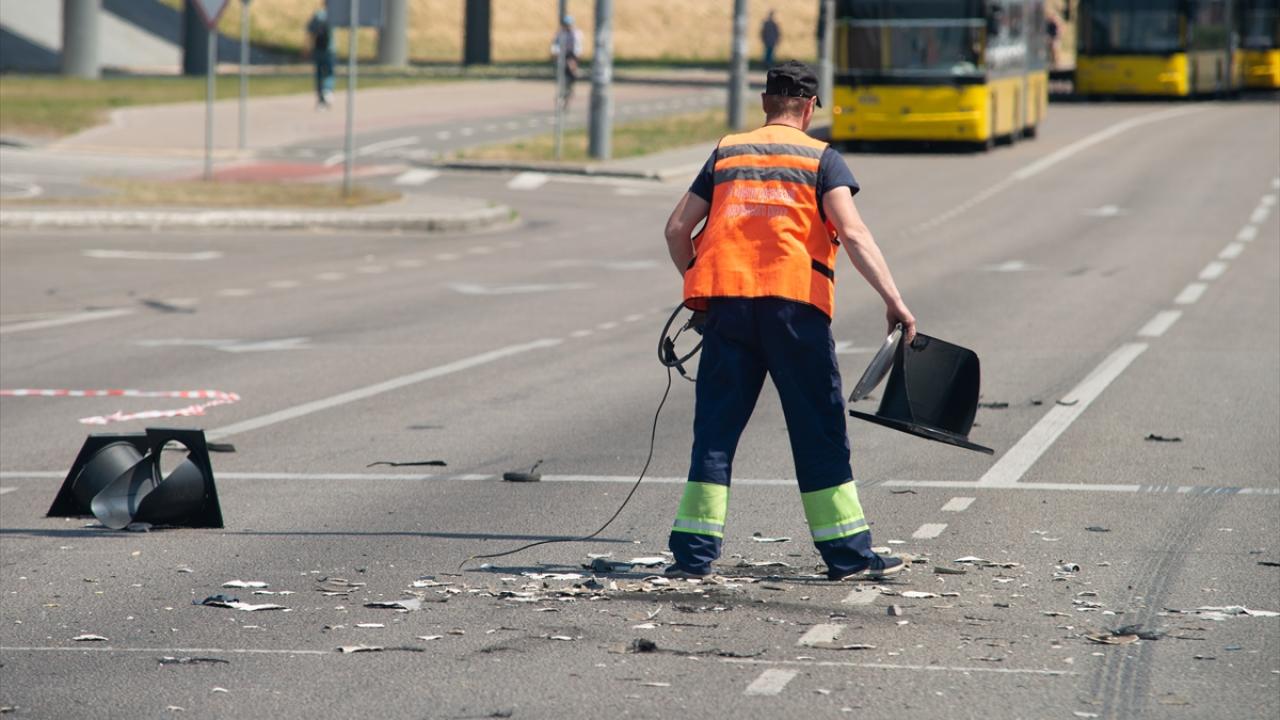 Belediye işçileri olayın ardından kalan parçaları temizledi.