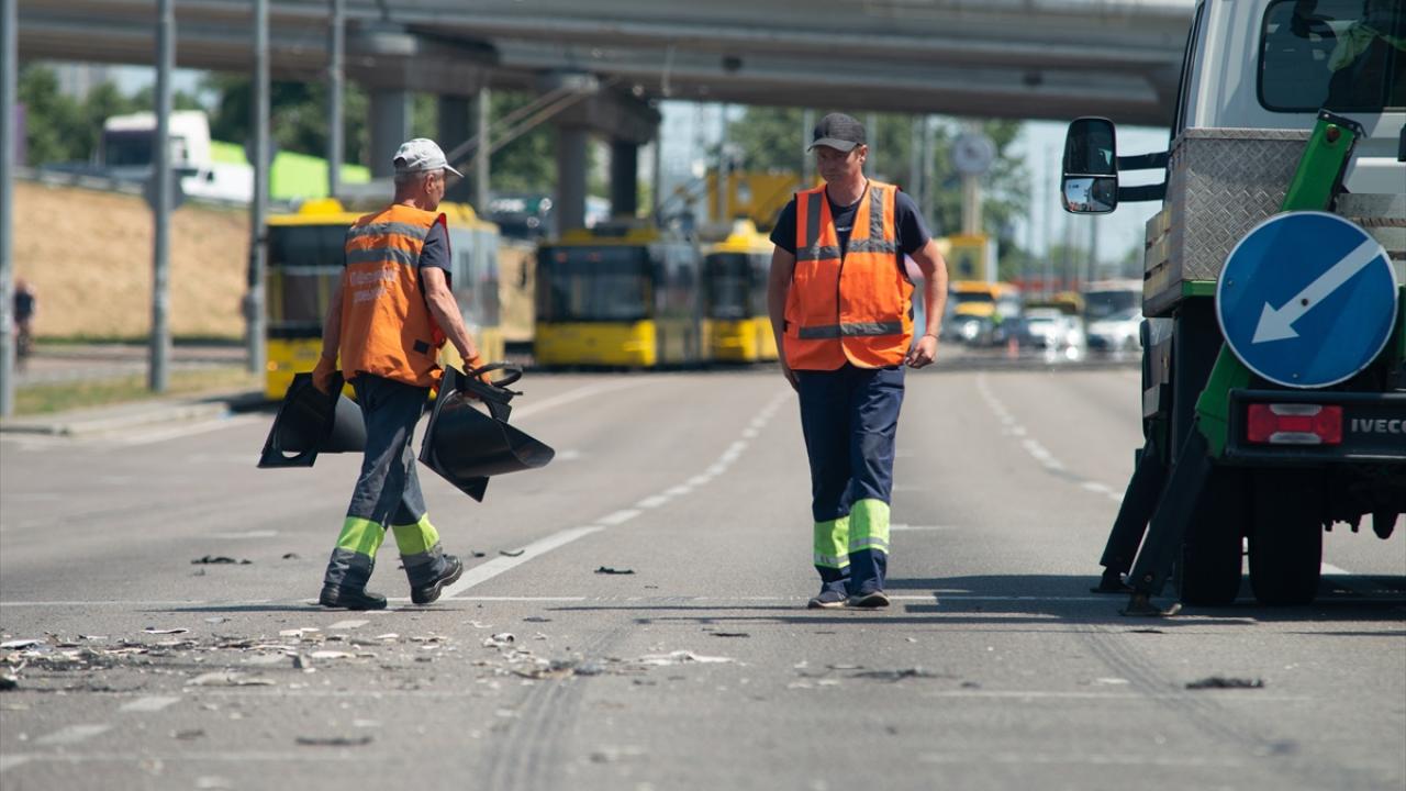 Rus roketinden düşen parçalar Kiev'de bir otoyola zarar verdi