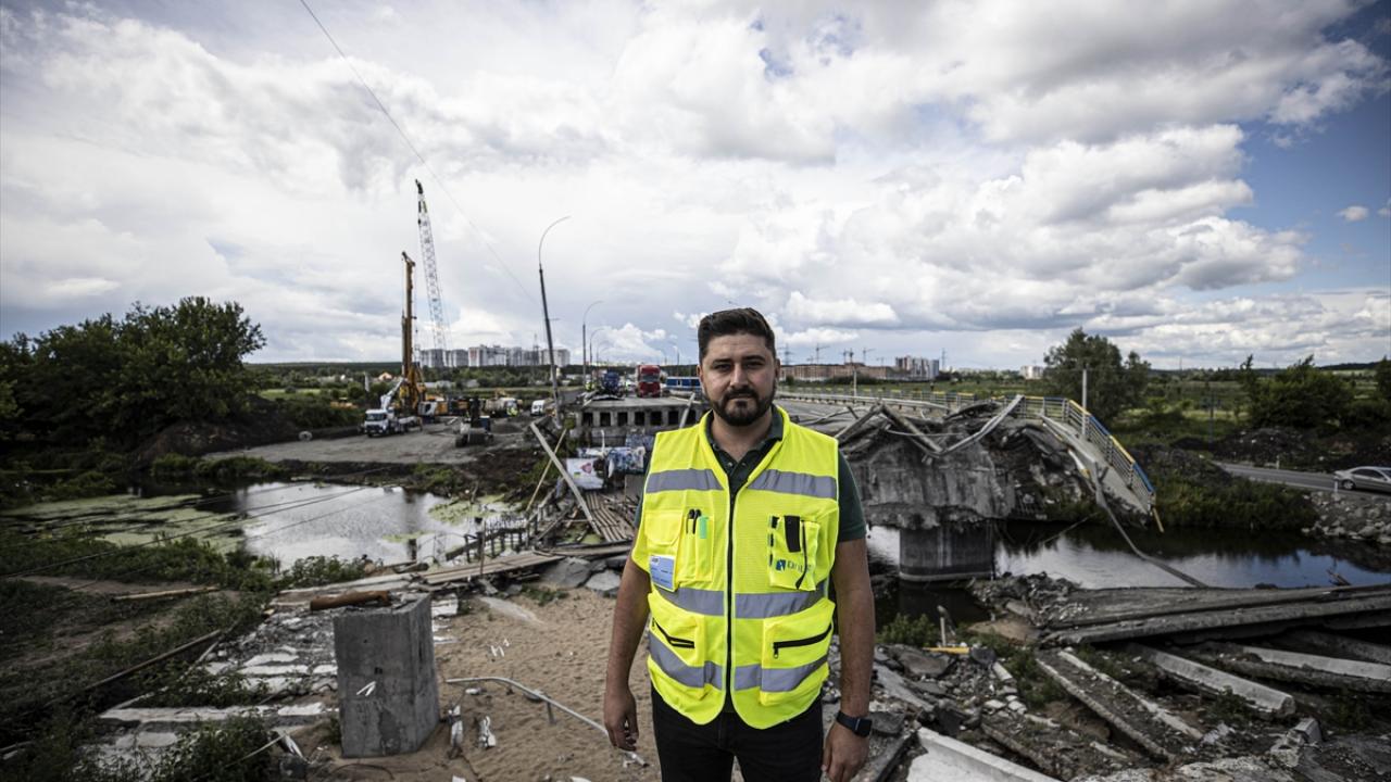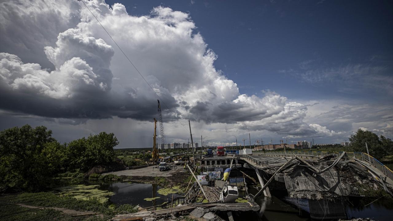 Rus ordusunun başkent Kiev’e ilerleyişini engellemek amacıyla patlatılan köprünün yerine Türk şirketi "Onur Grup" tarafından yeni köprü inşa ediliyor.