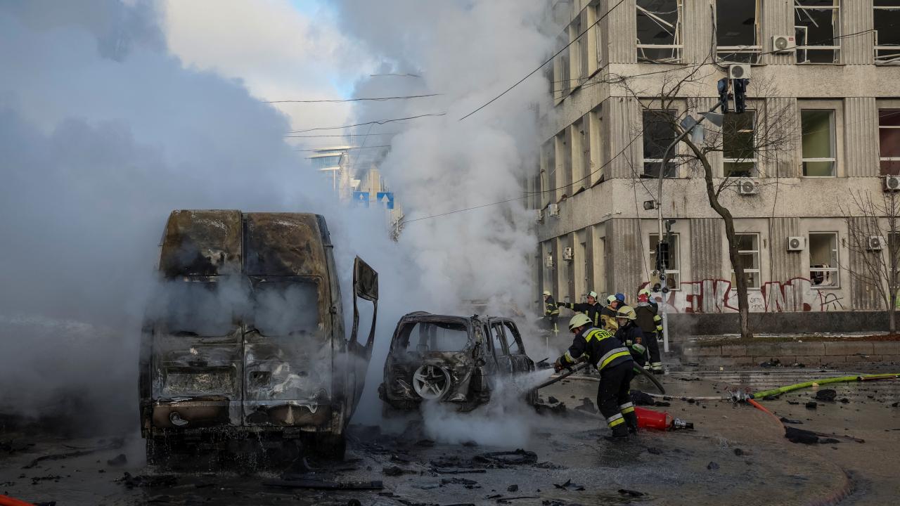 Rusya'nın, Ukrayna'ya açtığı savaş devam ediyor. Ukrayna'nın başkenti Kiev'e Rus güçlerince düzenlenen füze saldırısında çok sayıda bina ağır zarar gördü.