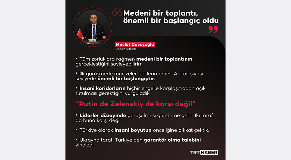 Türkiye barışa kapı araladı. Dışişleri Bakanı Mevlüt Çavuşoğlu, Rusya ve Ukraynalı mevkidaşlarını Antalya’da bir araya getirdi.