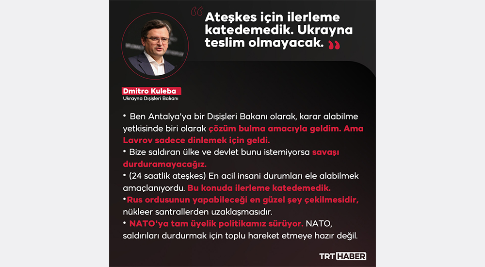 Antalya Diplomasi Forumu`ndaki görüşmenin ardından Kuleba`nın açıklamaları.