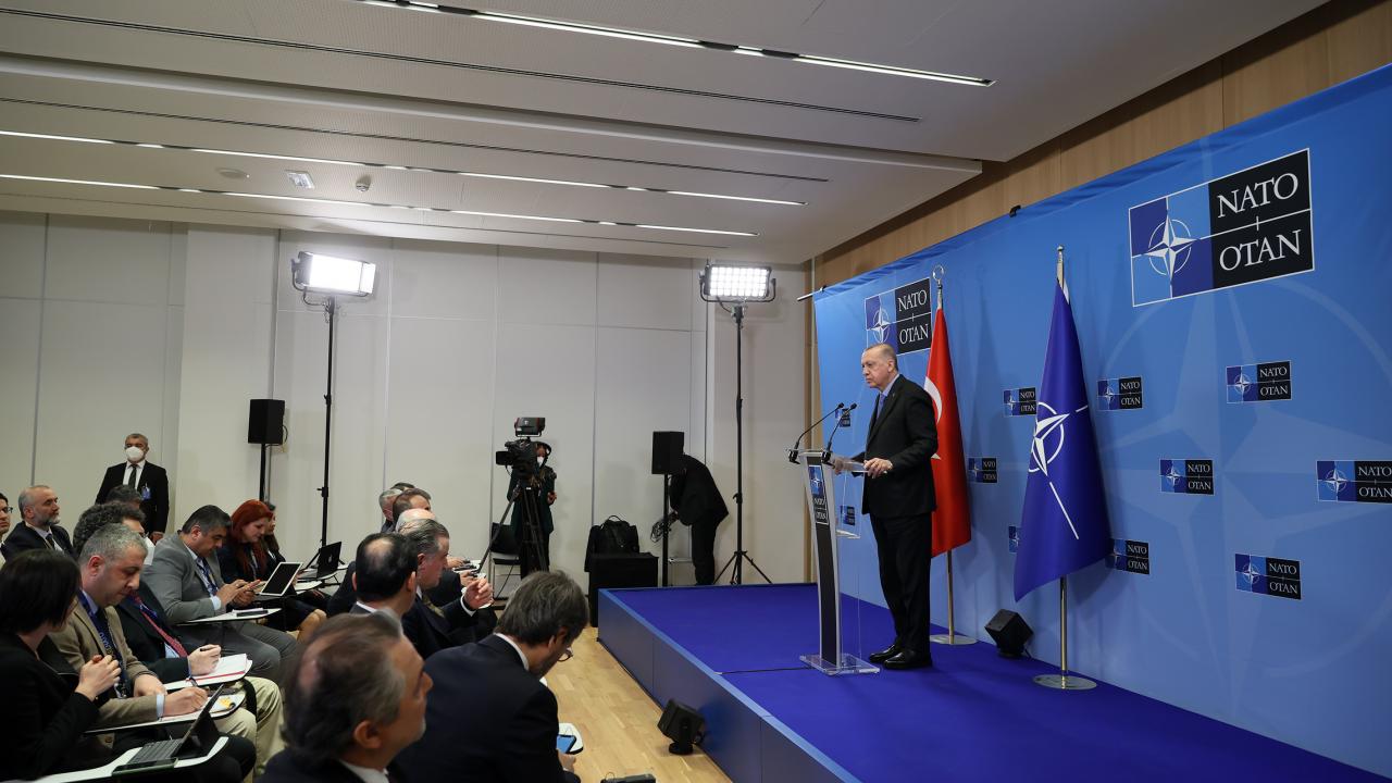 Cumhurbaşkanı Erdoğan, NATO Olağanüstü Devlet ve Hükümet Başkanları Zirvesi`nin ardından NATO Karargahında basın toplantısı düzenledi.