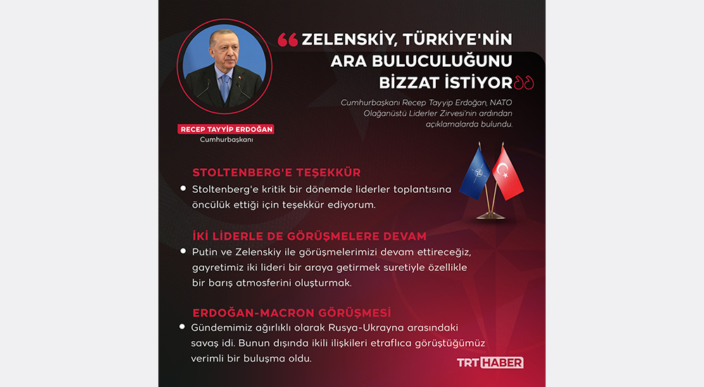 Cumhurbaşkanı Erdoğan, "Zelenskiy, Türkiye’nin ara buluculuğunu bizzat istiyor. Olumlu bir talep, teklif gelirse zaten buna hazırız" dedi. Erdoğan`ın açıklamaları şu şekilde: