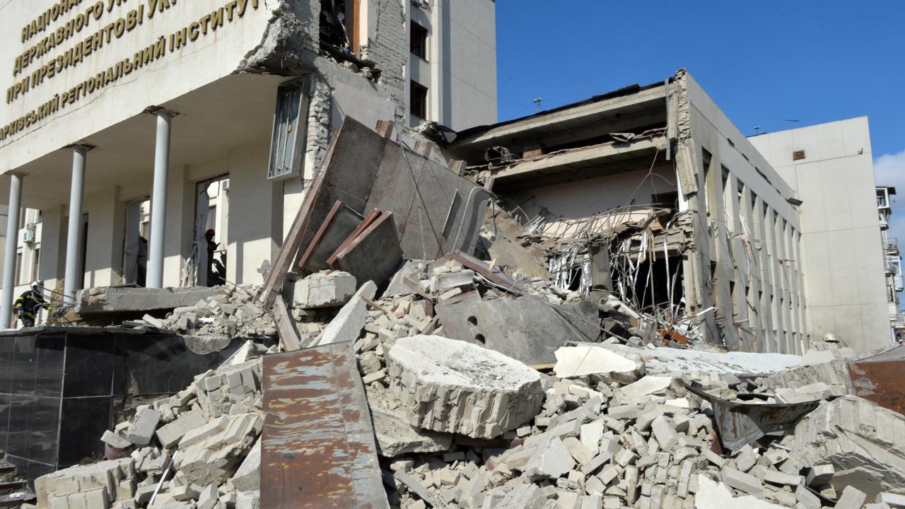 Harkiv`de çok katlı bir eğitim binası hedefteydi.