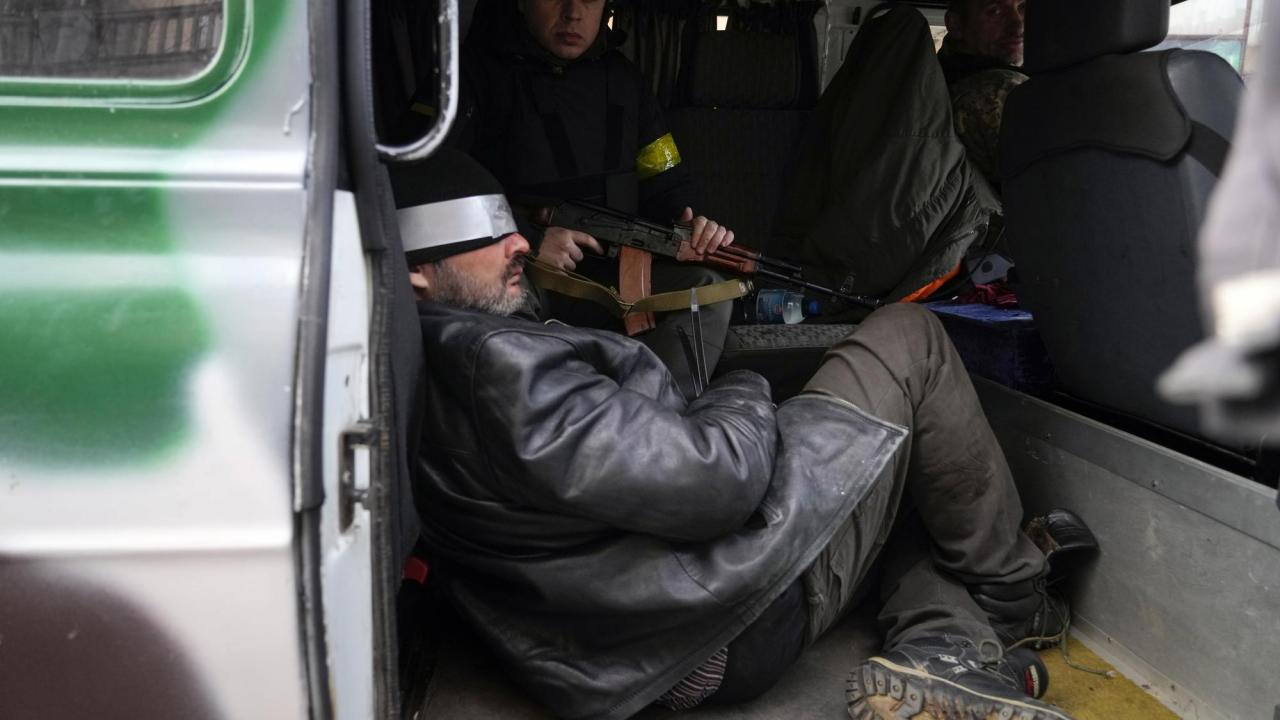 Ukrayna birlikleri, Ukrayna`da şüpheli bir Rus ajanına eşlik ediyor.