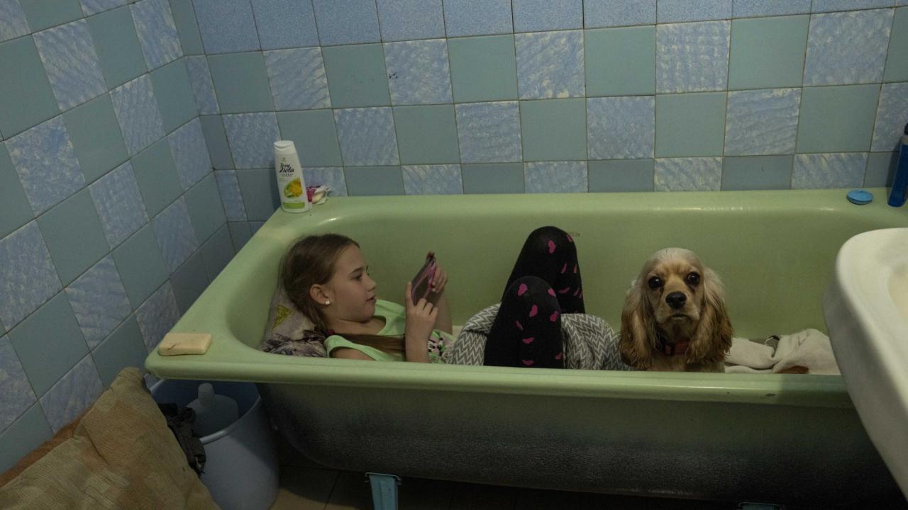 Yüz gün önce, küvet banyo yapmak içindi; şimdi ise küçük bir kızın ve köpeğinin bombalardan saklandığı bir yer.